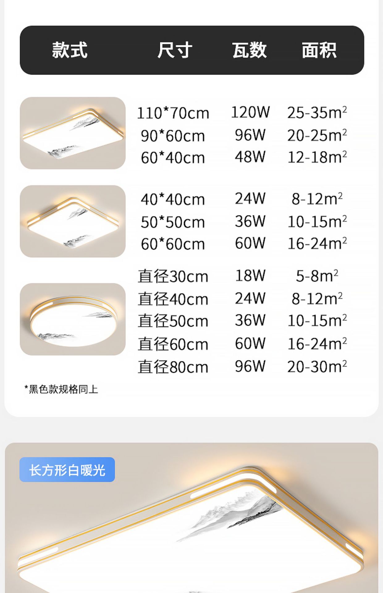 | square 60x60 cm, three colors, 144w | CN¥ 87.5 |