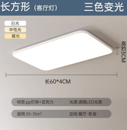 (2) Three-color changing light: can only adjust three colors, white light, yellow light, warm light, and switch between the three colors. It is controlled by a switch and does not have remote control. The wall switch controls the light. If you turn it on and then off again, the light will change.