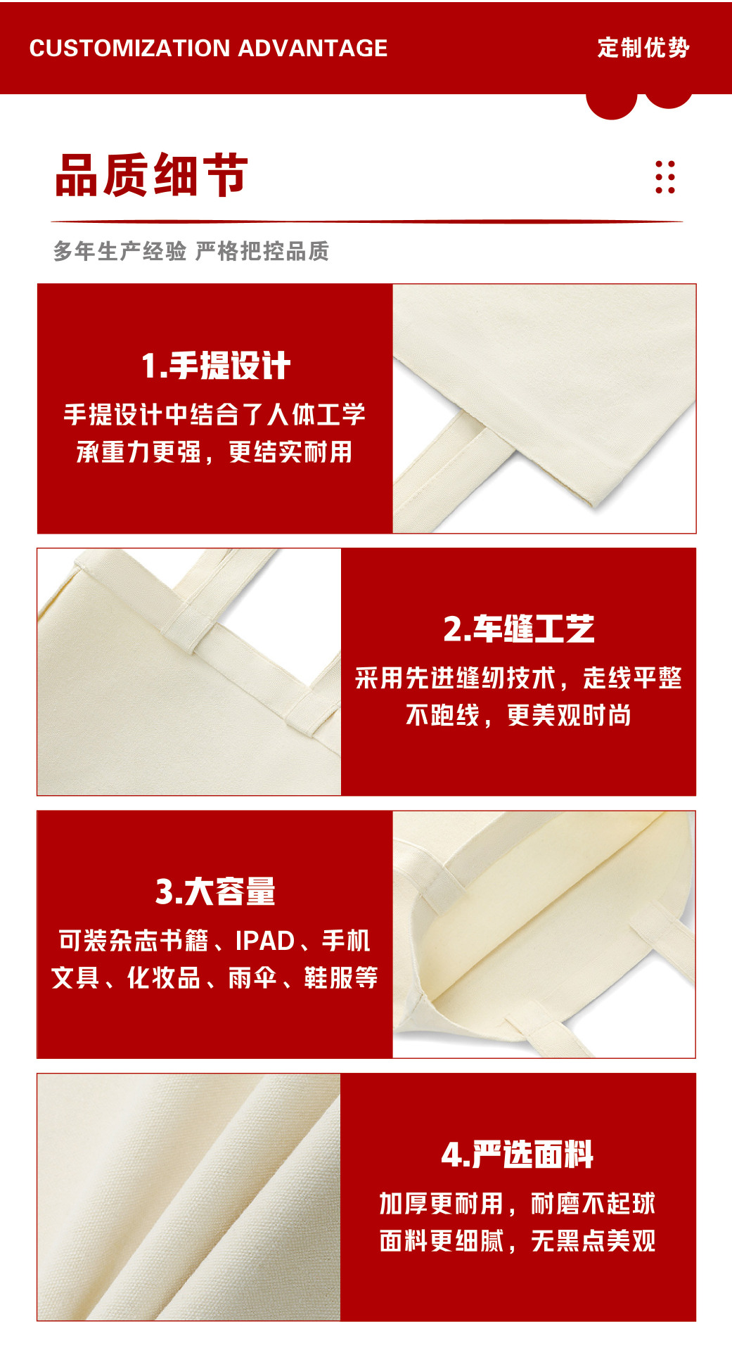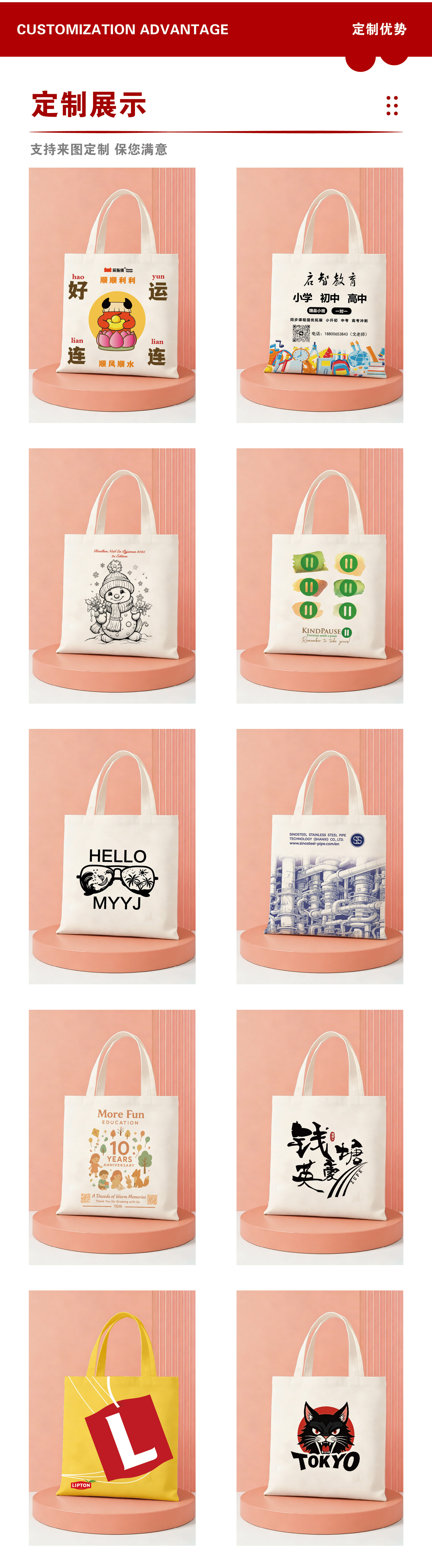 about customization; default value: 10, polyester-cotton canvas