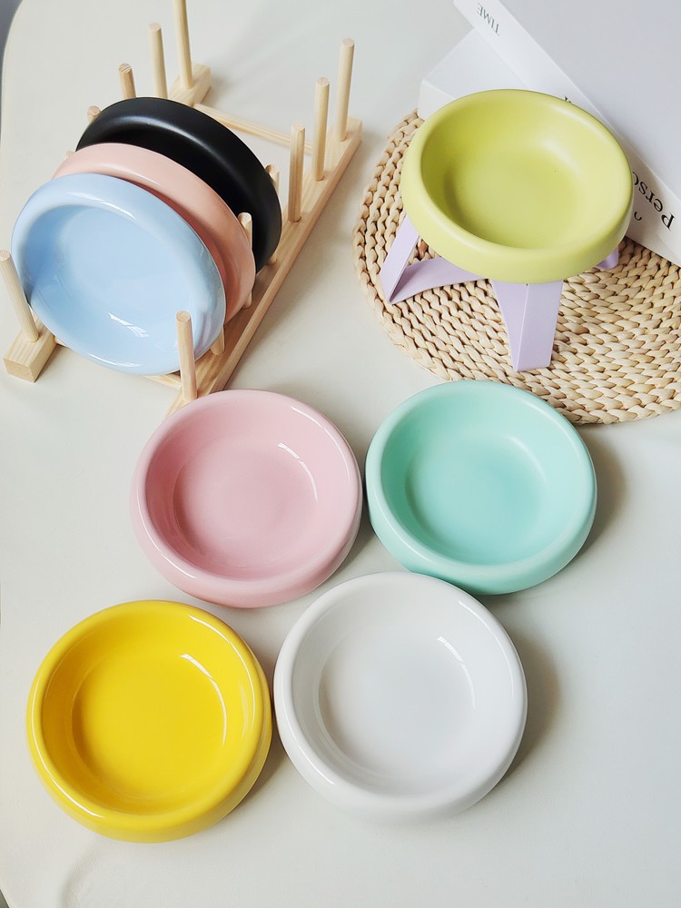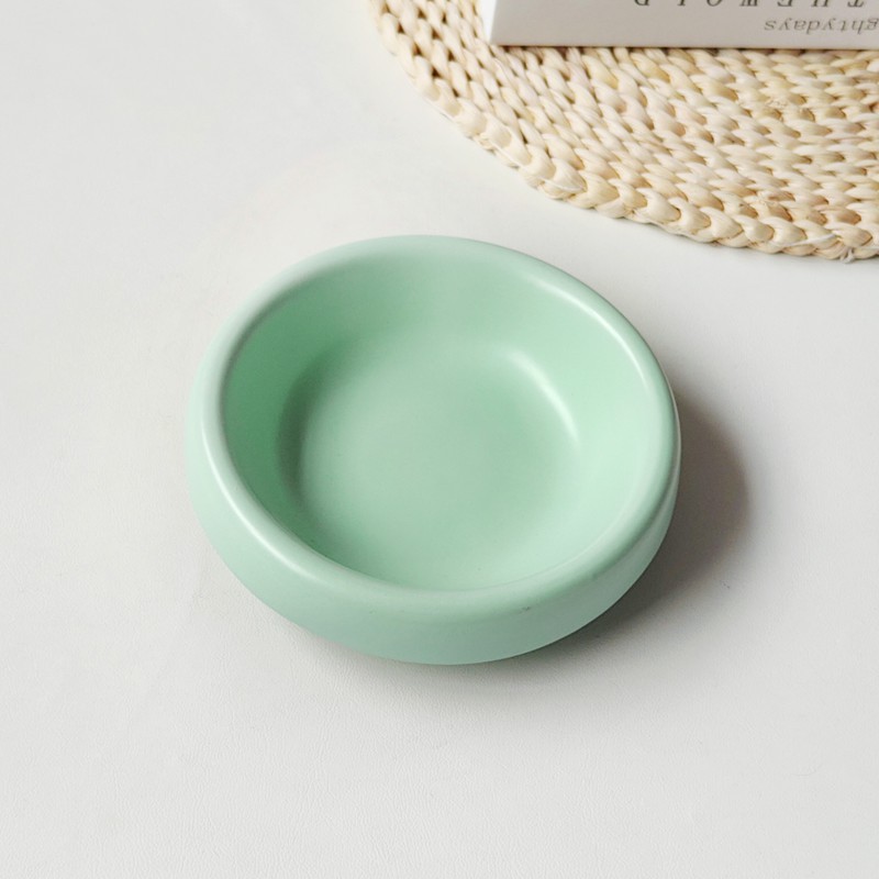 matte mint-green bowl + purple stand