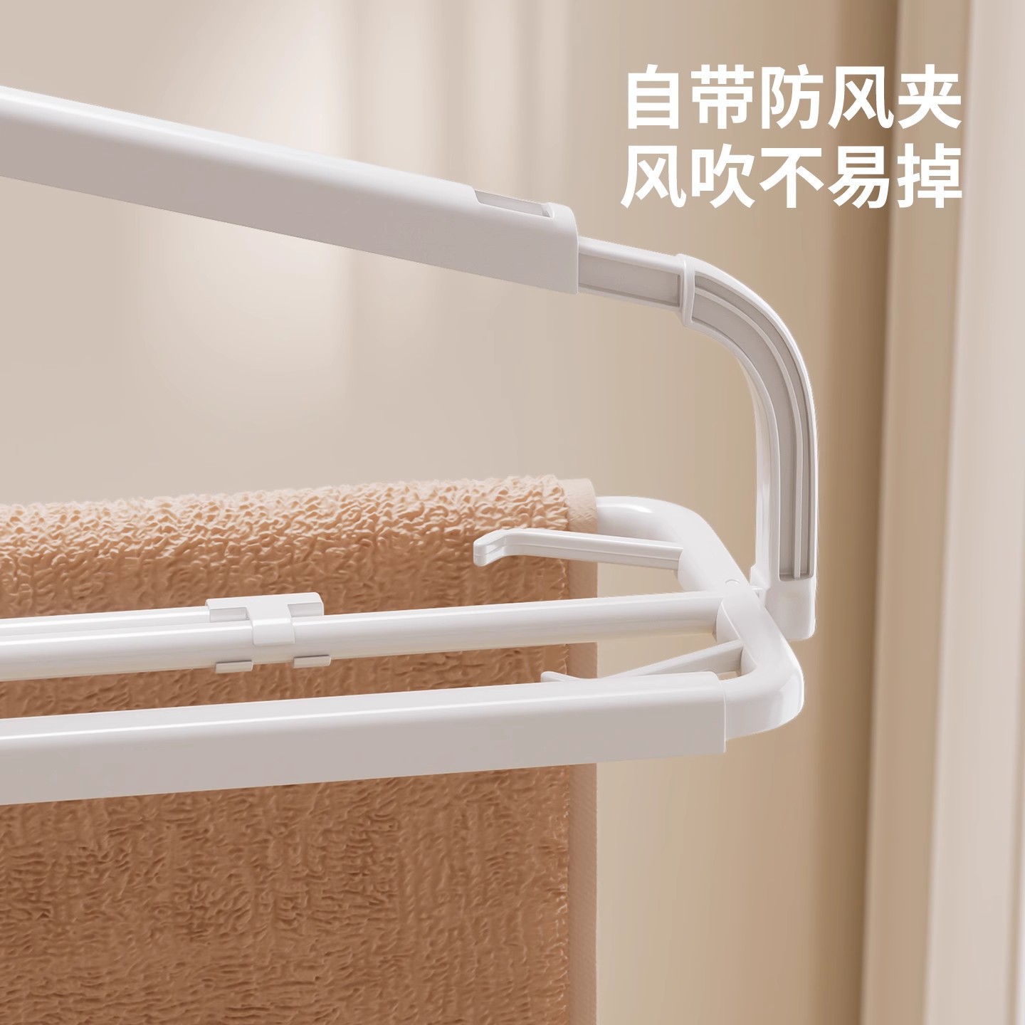 collapsible hanger for home use to hang clothes, anti-slip pp material, can be used to hang towels, bed sheets, and duvet covers, windproof and non-slip.