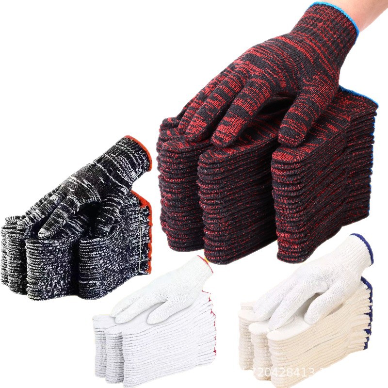 13-gauge black thin nylon gloves, none.