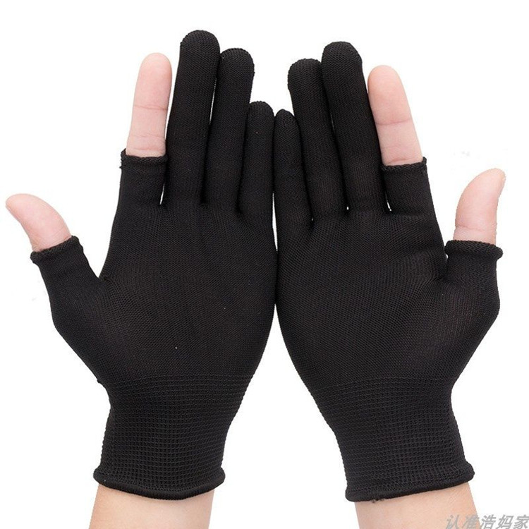 Wholesale 13-pin nylon gloves with 2, 3, and 5-finger openings, quantity discounts available. Please consult our customer service for more information. Products are exempt from tax.