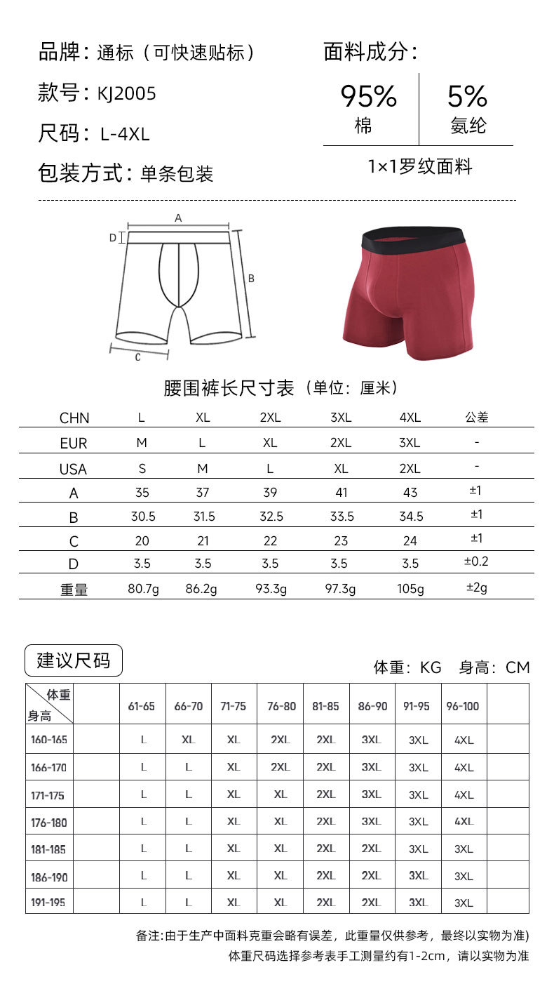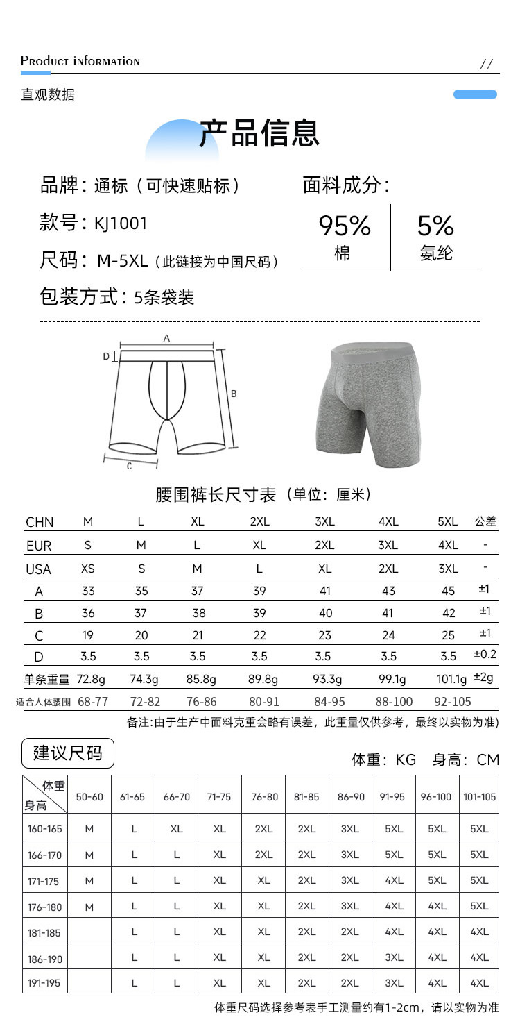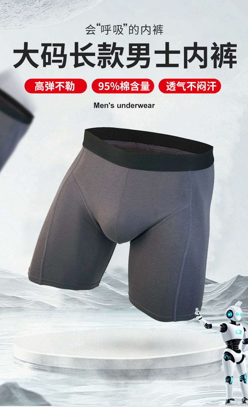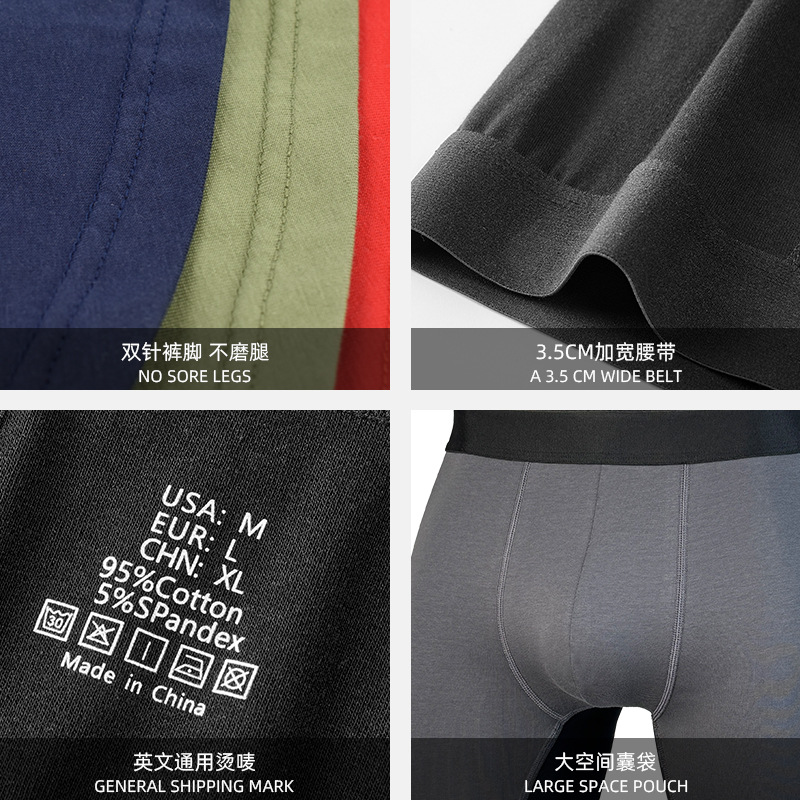 Longer-length anti-abrasion leg gusset trend-setting flat-front underwear for men, comfortable and comfortable cotton underwear for sports, Amazon, foreign trade.