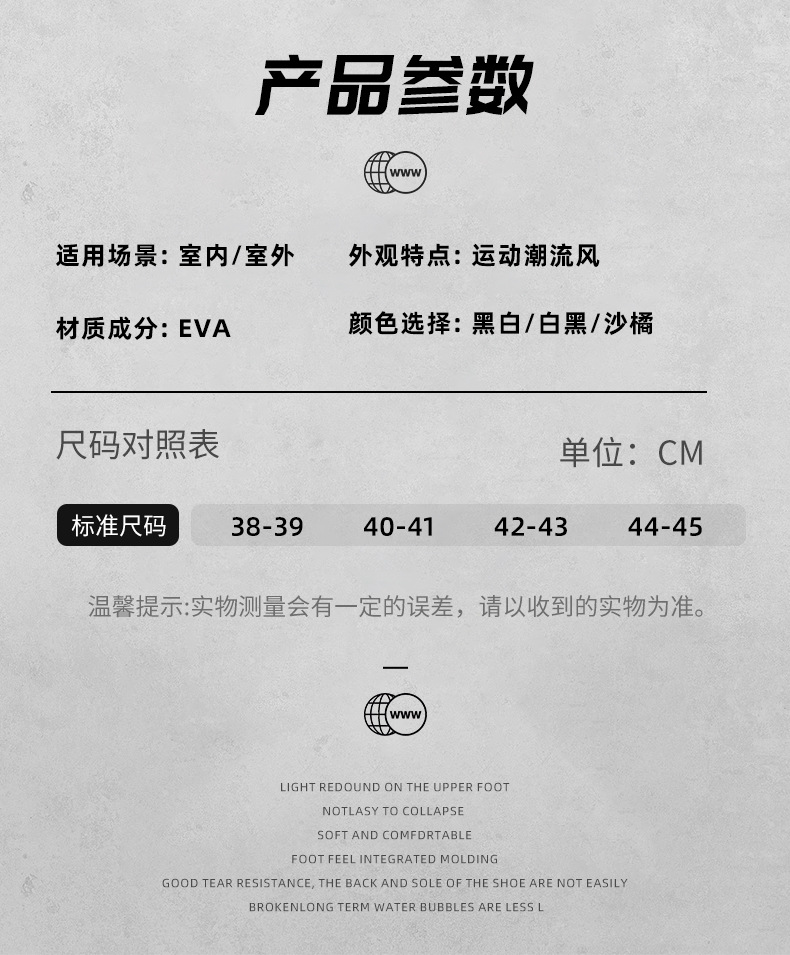 Warm Tip: EVA material slippers should be avoided from high-temperature exposure, as prolonged high-temperature exposure can cause the shoes to deform.