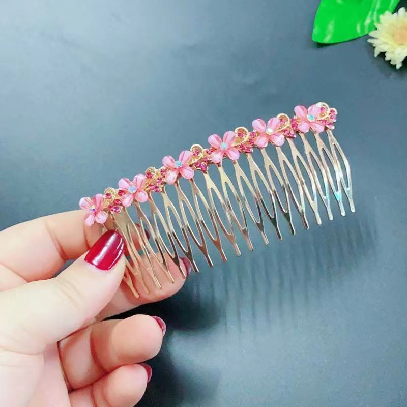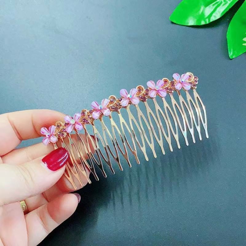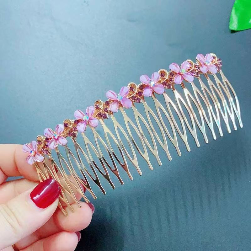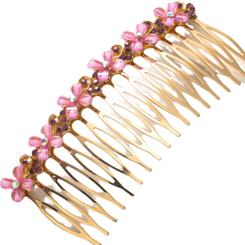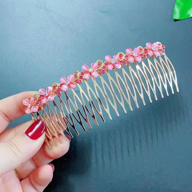 18-tooth pink four-petal flower hair comb
