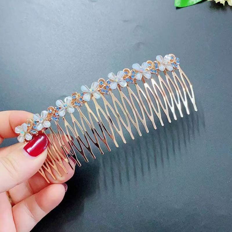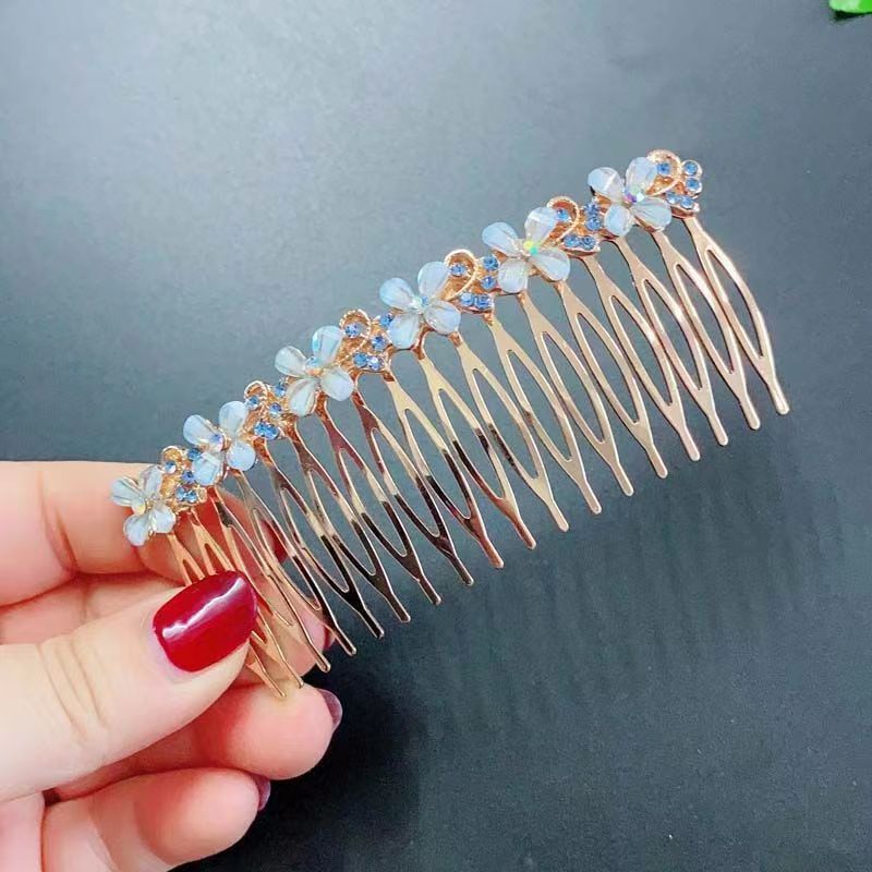 18-tooth blue four-petal flower hair comb