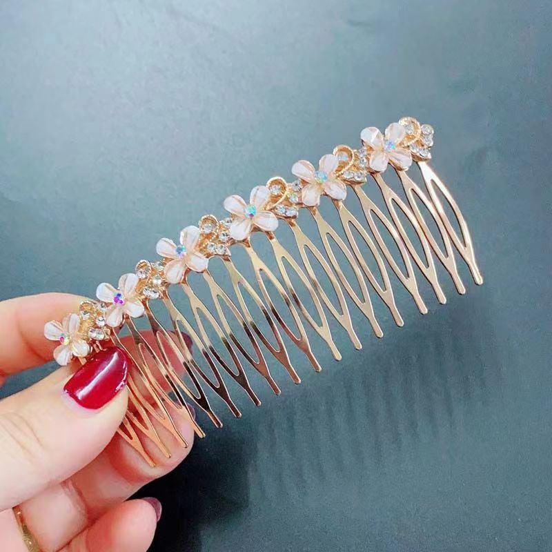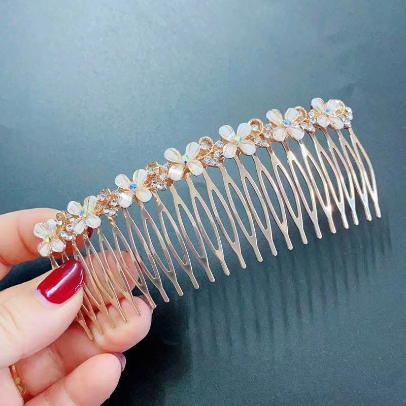 18-tooth champagne four-petal flower hair comb