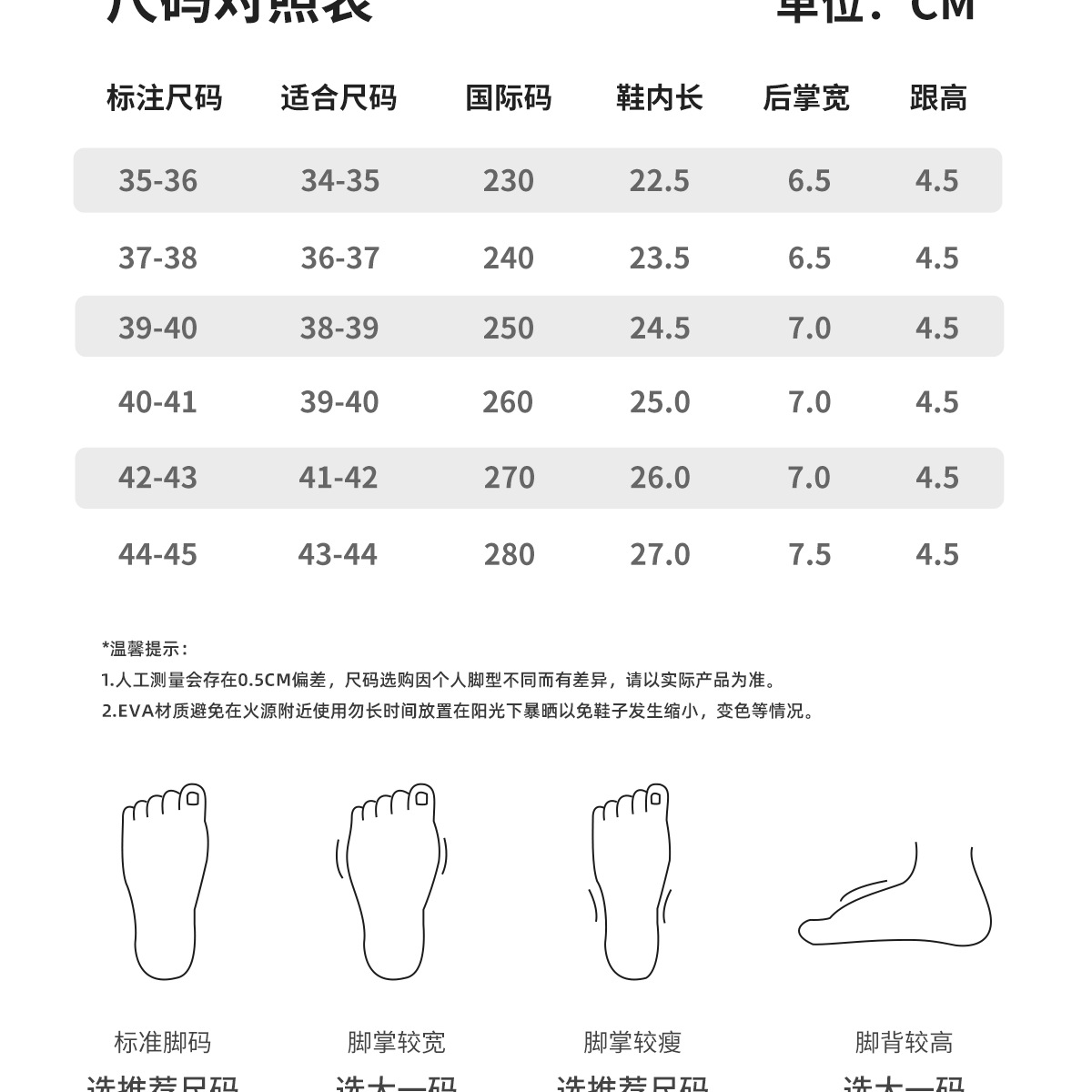 Warm Tip: EVA material slippers should be avoided from high-temperature exposure, as prolonged high-temperature exposure can cause the shoes to deform.