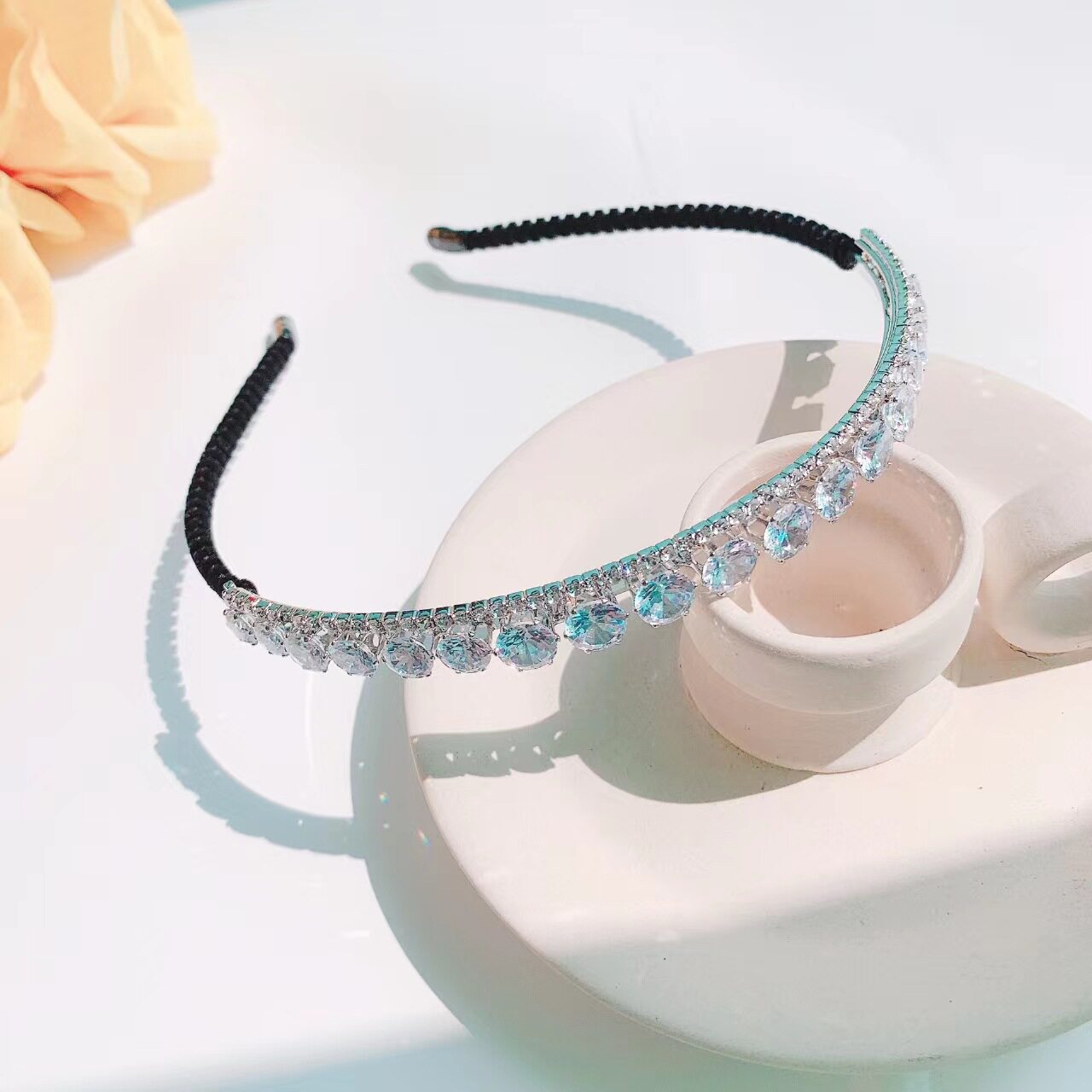 new korean style women's rhinestone hair accessories head accessories handmade fabric exquisite headband one piece dropshipping