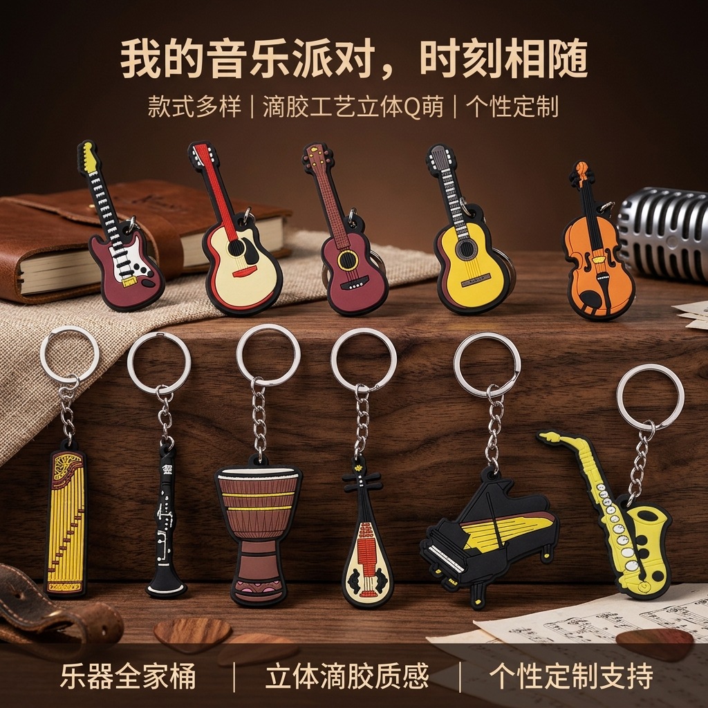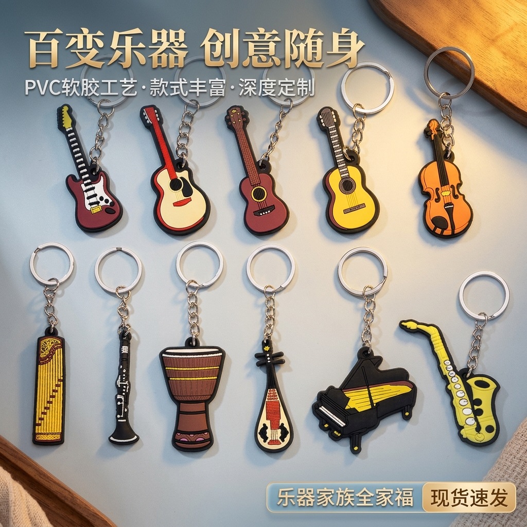 musical instrument pvc customized keychain small gift small commodity silicone blind box pendant cross-border flexible glue key chain