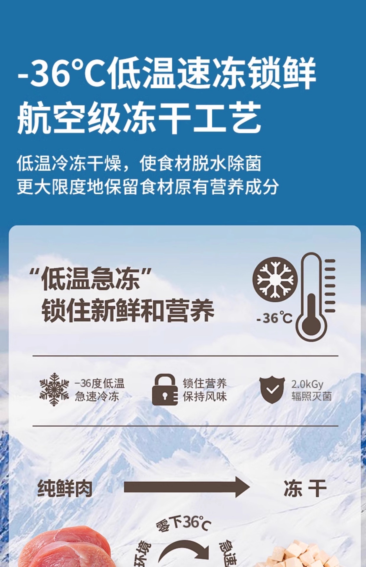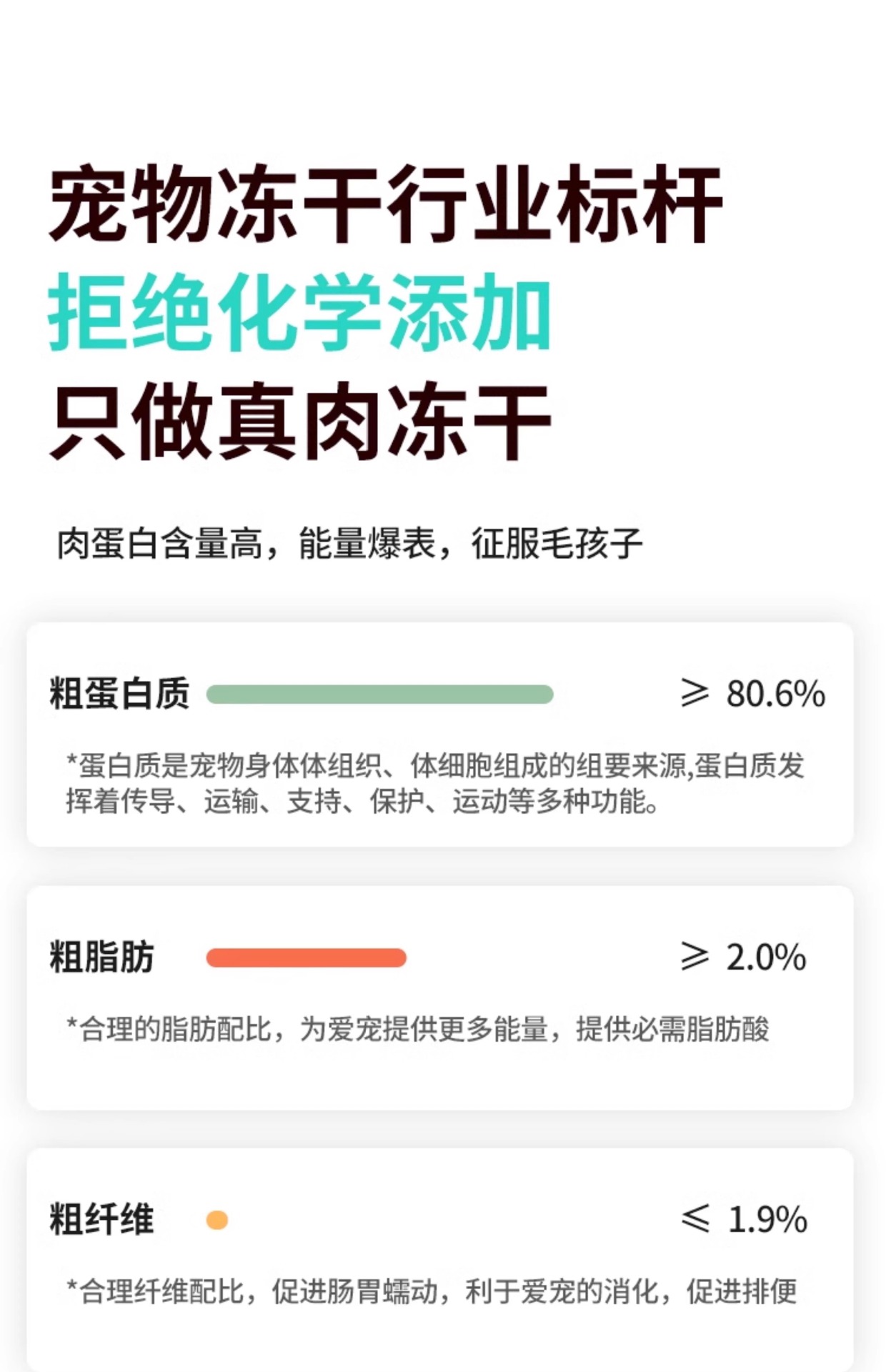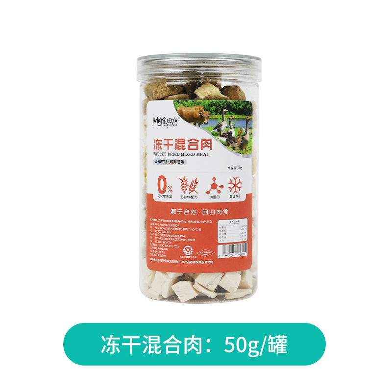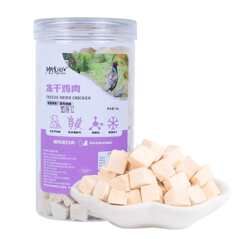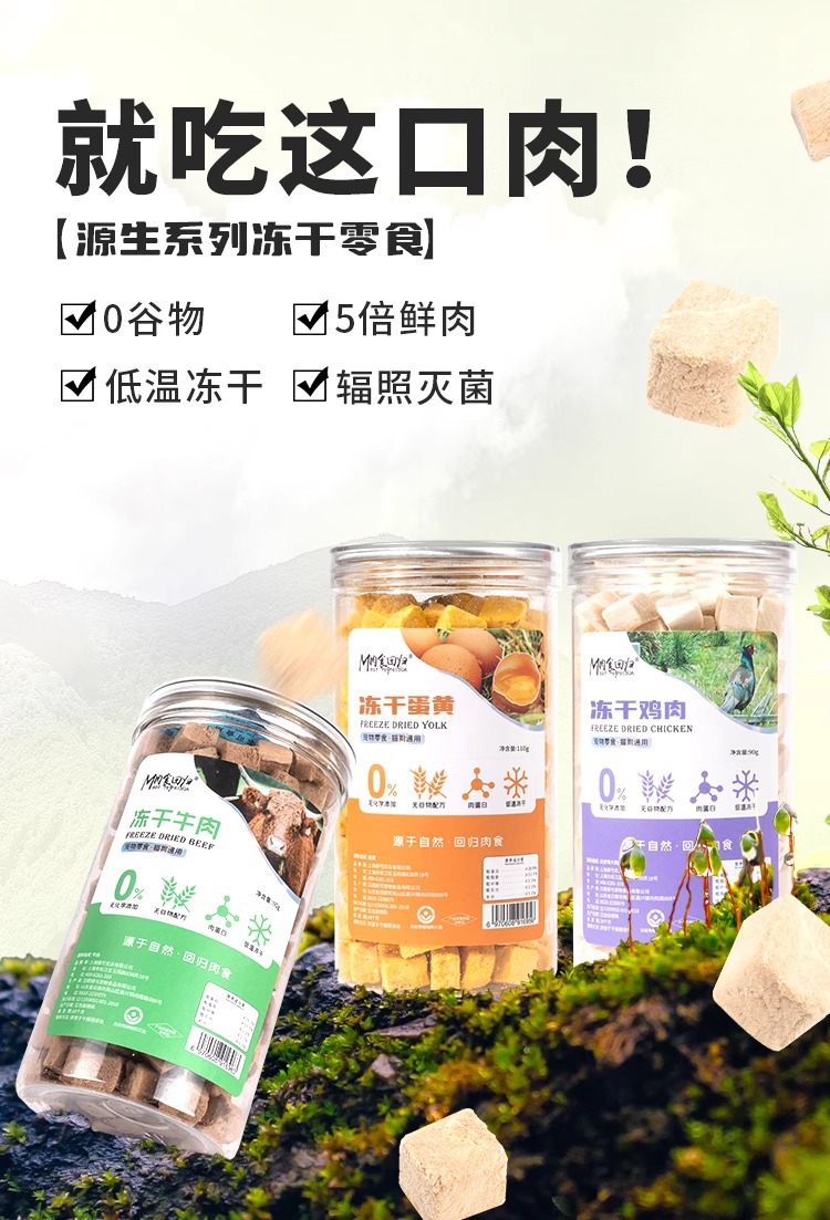 Based on the production records and extensive statistical data analysis of Rizhao Shungong Pet Food Co., Ltd., a real and stable freeze-drying process and process control have been established. It has been found that raw materials including chicken, duck, cod, salmon, beef, rabbit, lamb, egg yolk, and chicken liver, as well as fruits and vegetables, after being subjected to low-temperature freeze-drying, only 20% of the raw materials are converted into finished products. The finished products retain their nutritional components such as protein, fat, ash, and fiber intact, except for the loss of water. Essentially, five times the weight of the raw materials are concentrated into only one times the weight of the finished product through freeze-drying. The nutrients are not lost, and the products are easy to store and preserve. Therefore, the products in this shop claim a 5:1 concentration of ingredients, and the concentration in this shop only refers to the weight concentration of ingredients and nutrition.