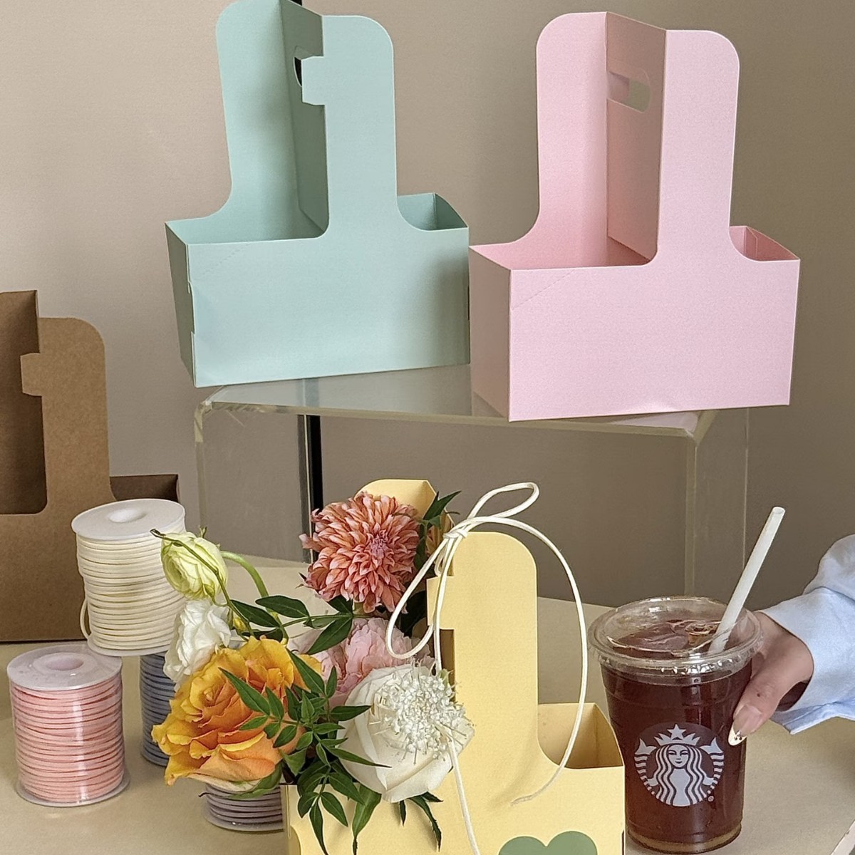 kraft paper four-cup embossed box; label customization available (please contact customer service).