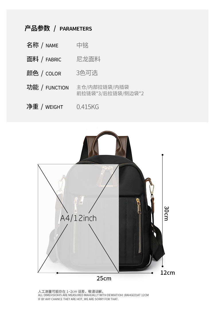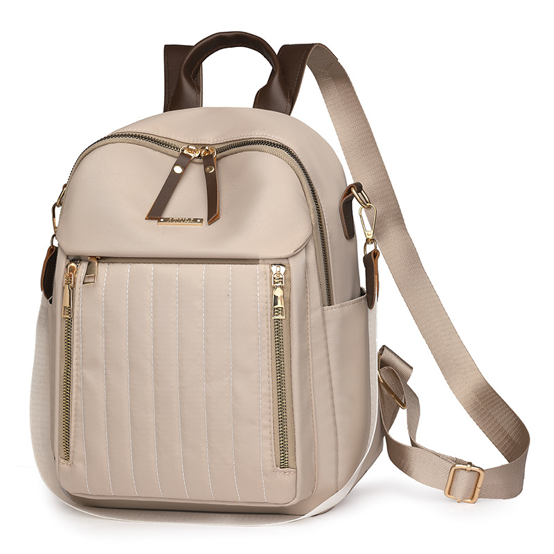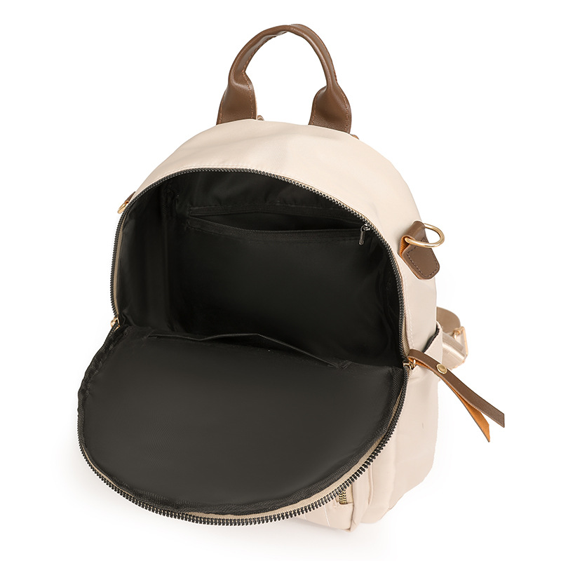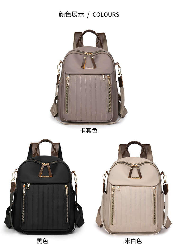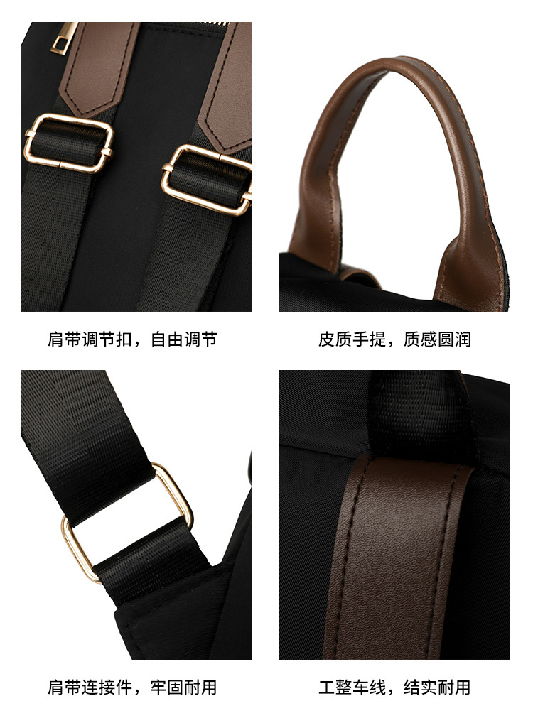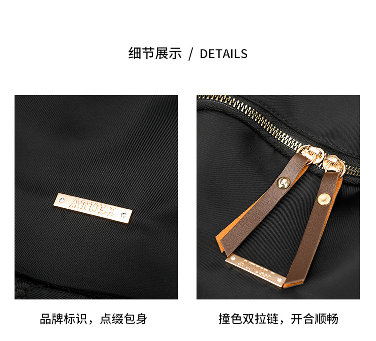 【Product Features】The product is made with custom-made nylon fabric, which features a natural color and a soft and comfortable feel. In addition to the shoulder straps on the back, the product is equipped with a separate shoulder strap made of the same main material, offering more carrying options. Custom-made hardware accessories with thickened and reinforced hook-plated process are used, offering good luster, strong pulling force, and long service life. The product's interior is lined with thickened fabric, ensuring smooth and comfortable use and resistance to wear. The interior pockets are designed with main material edge binding, which is both aesthetically pleasing and durable. The product uses silk thread for sewing, ensuring even tension and close stitching, creating a clean and elegant look.
