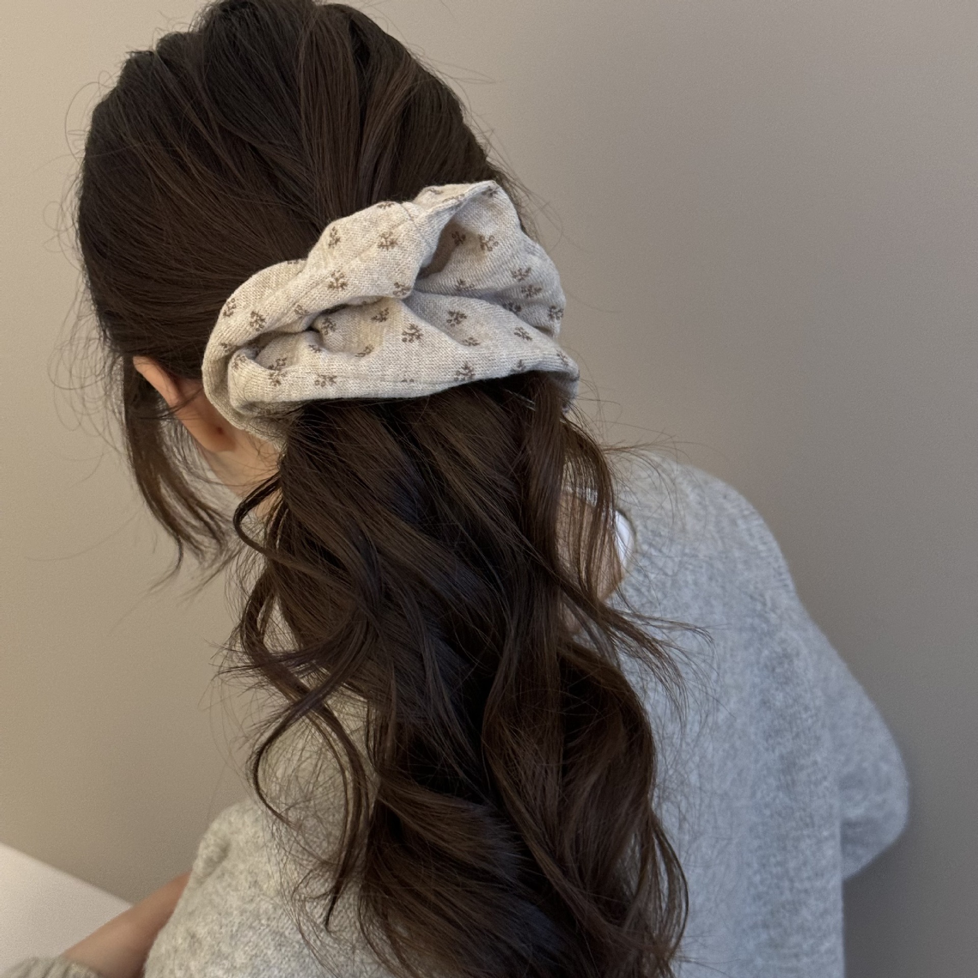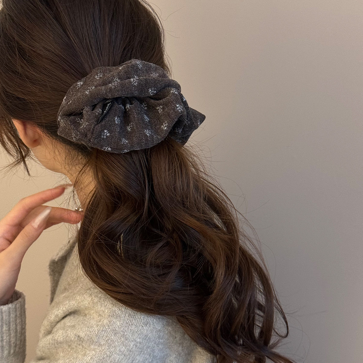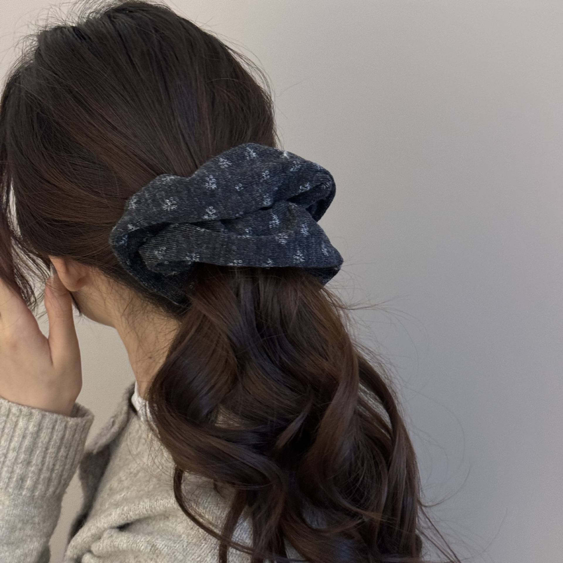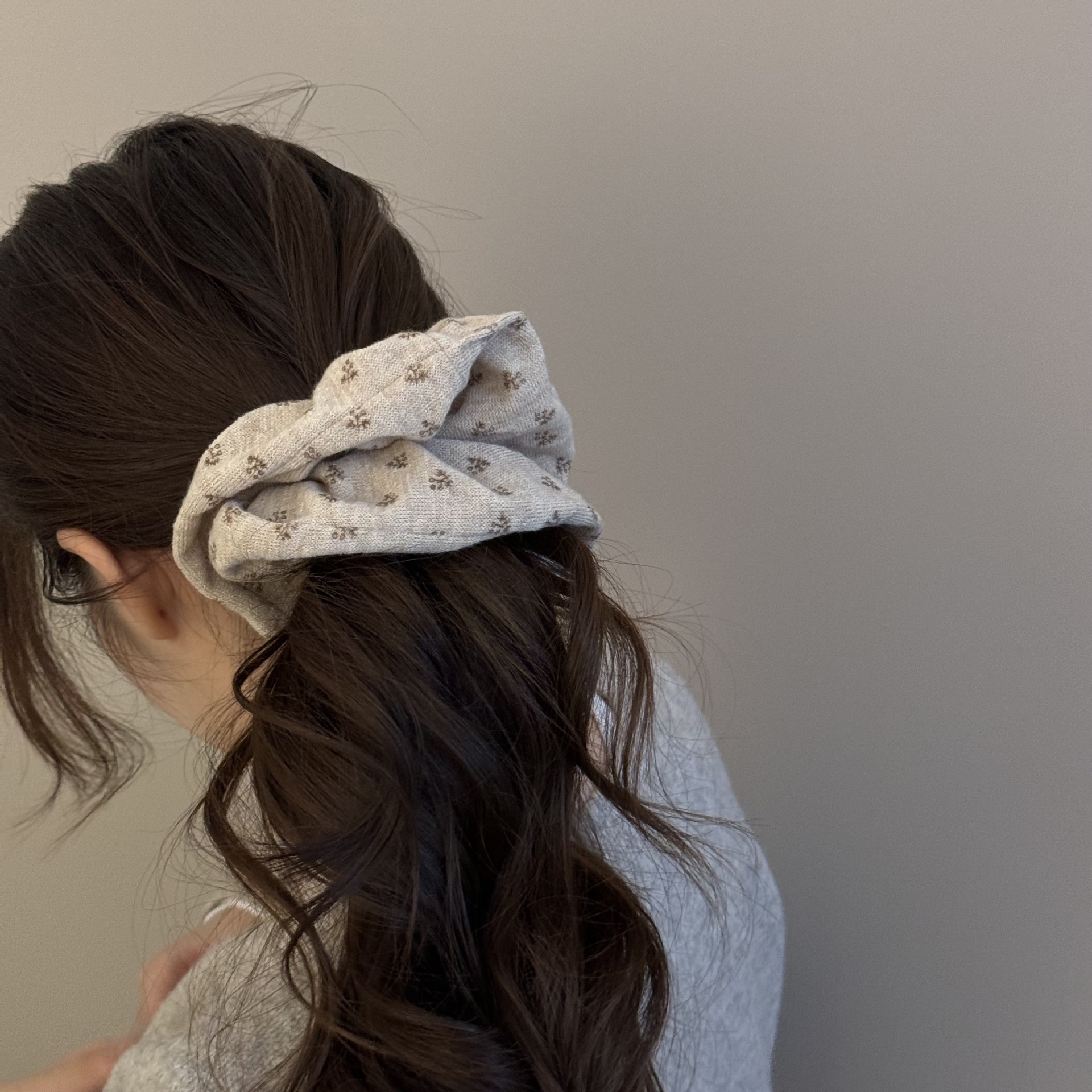 gray floral hair tie