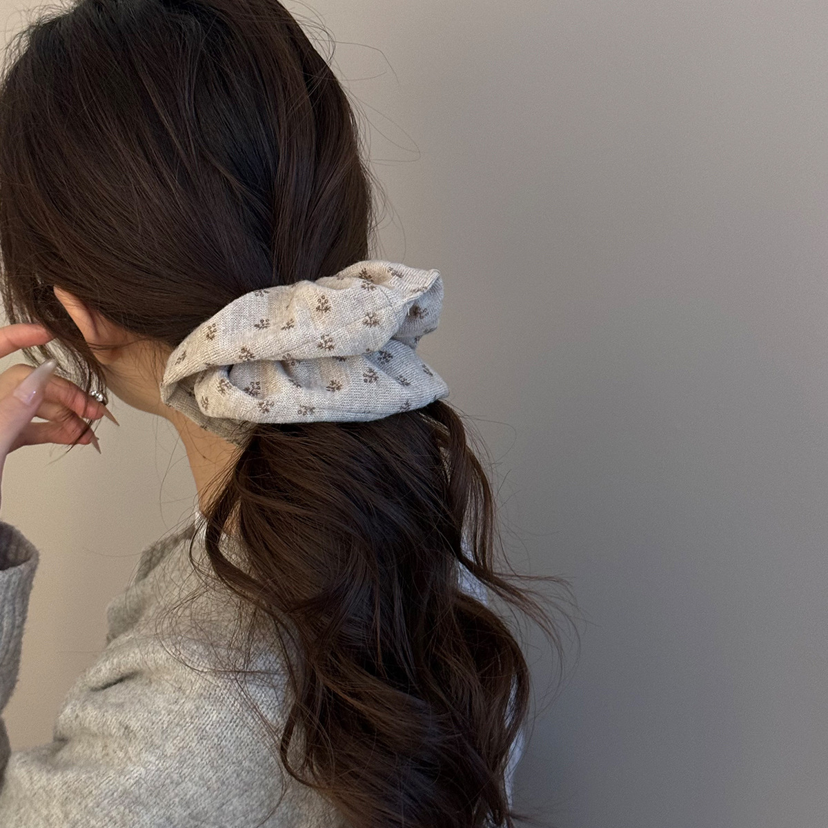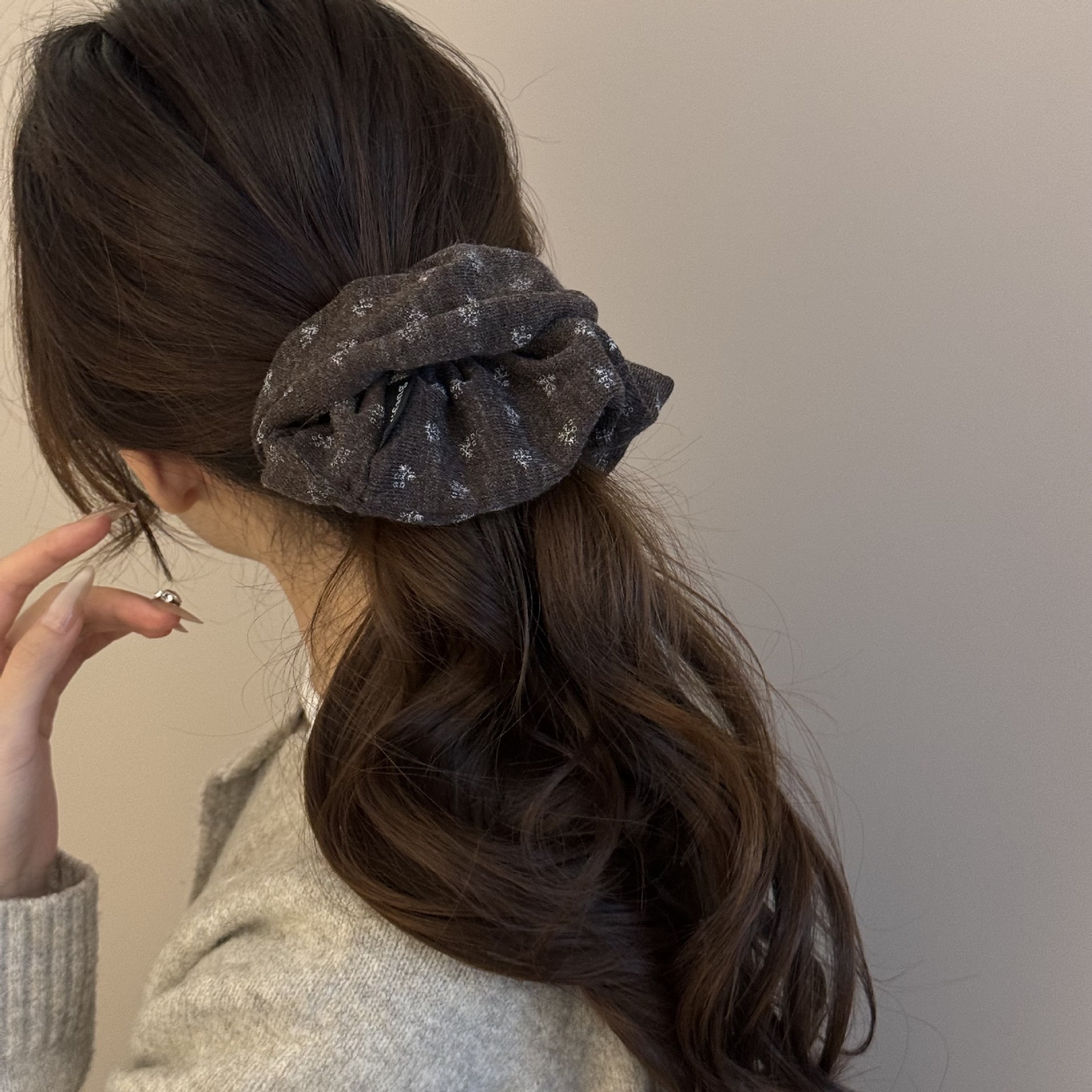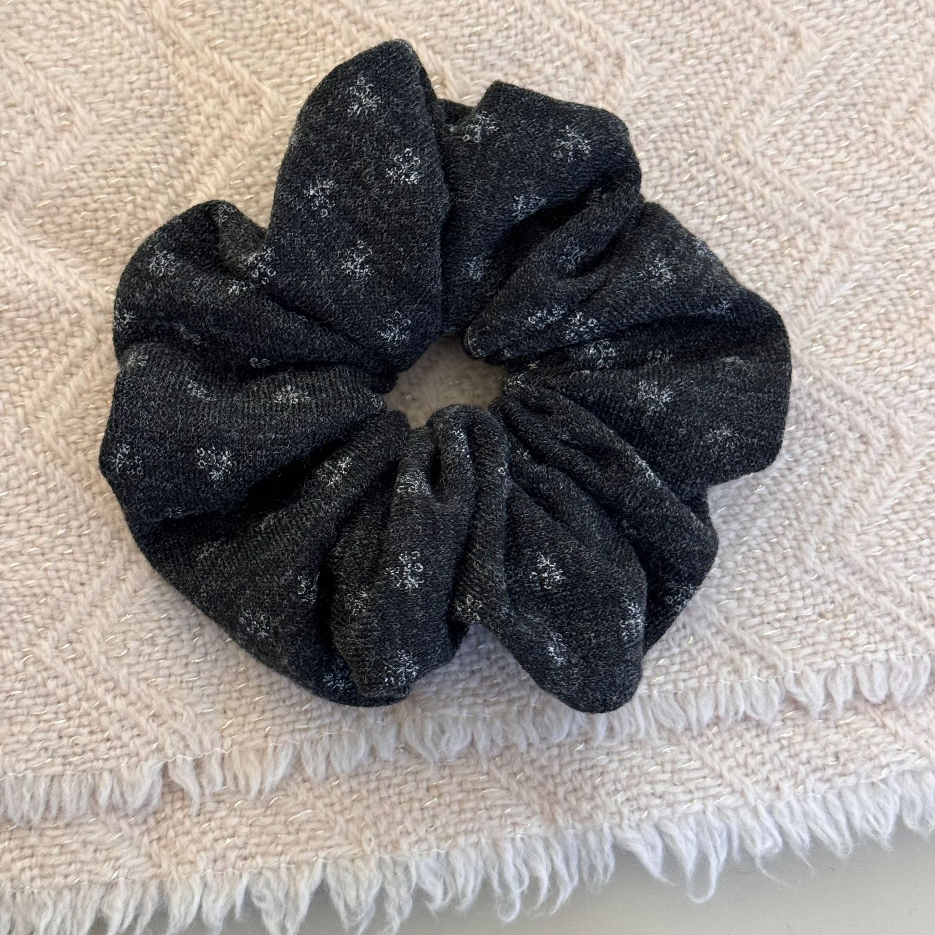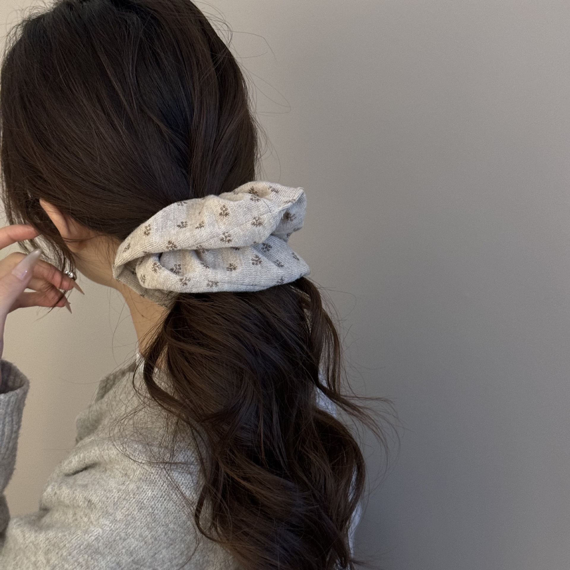 gray floral hair tie