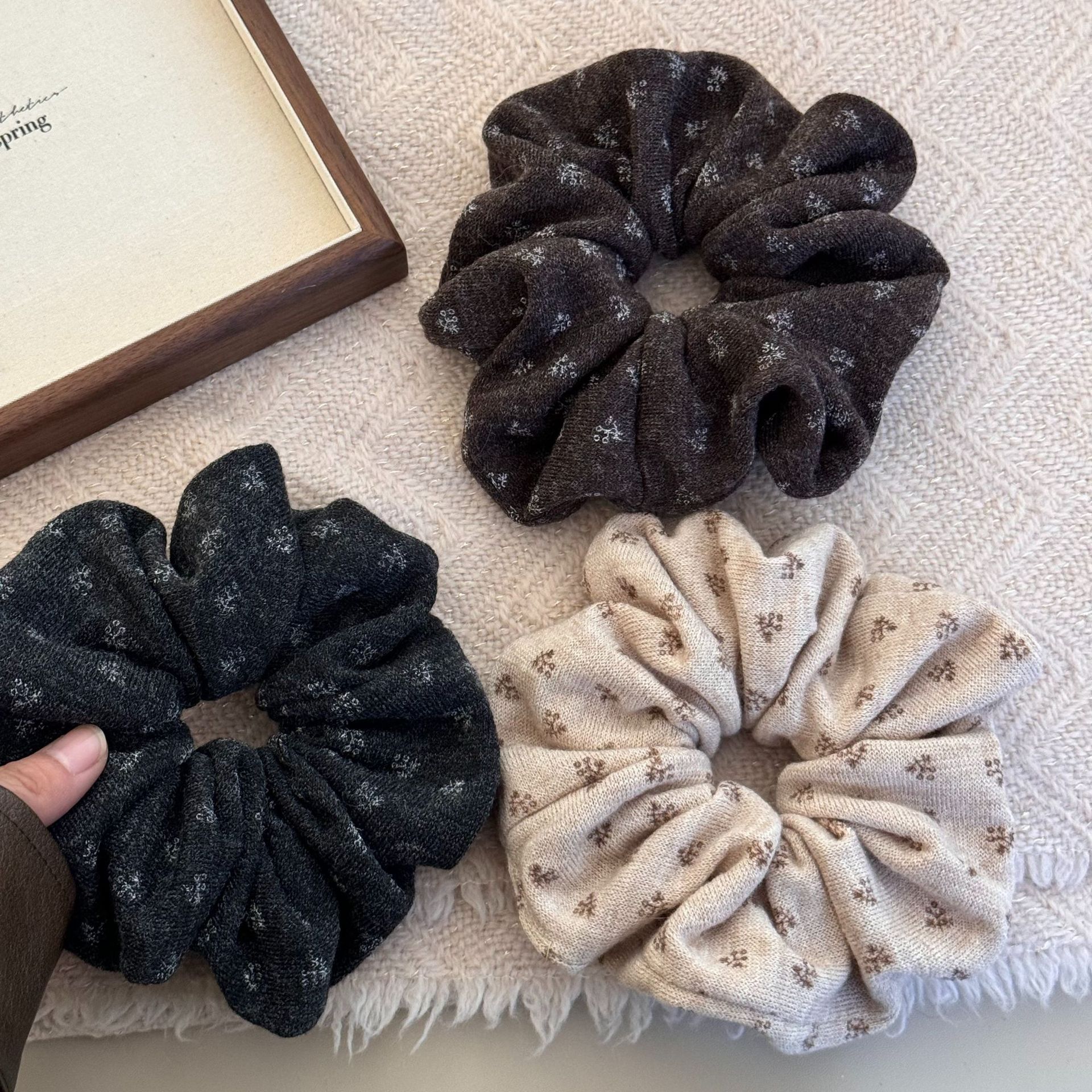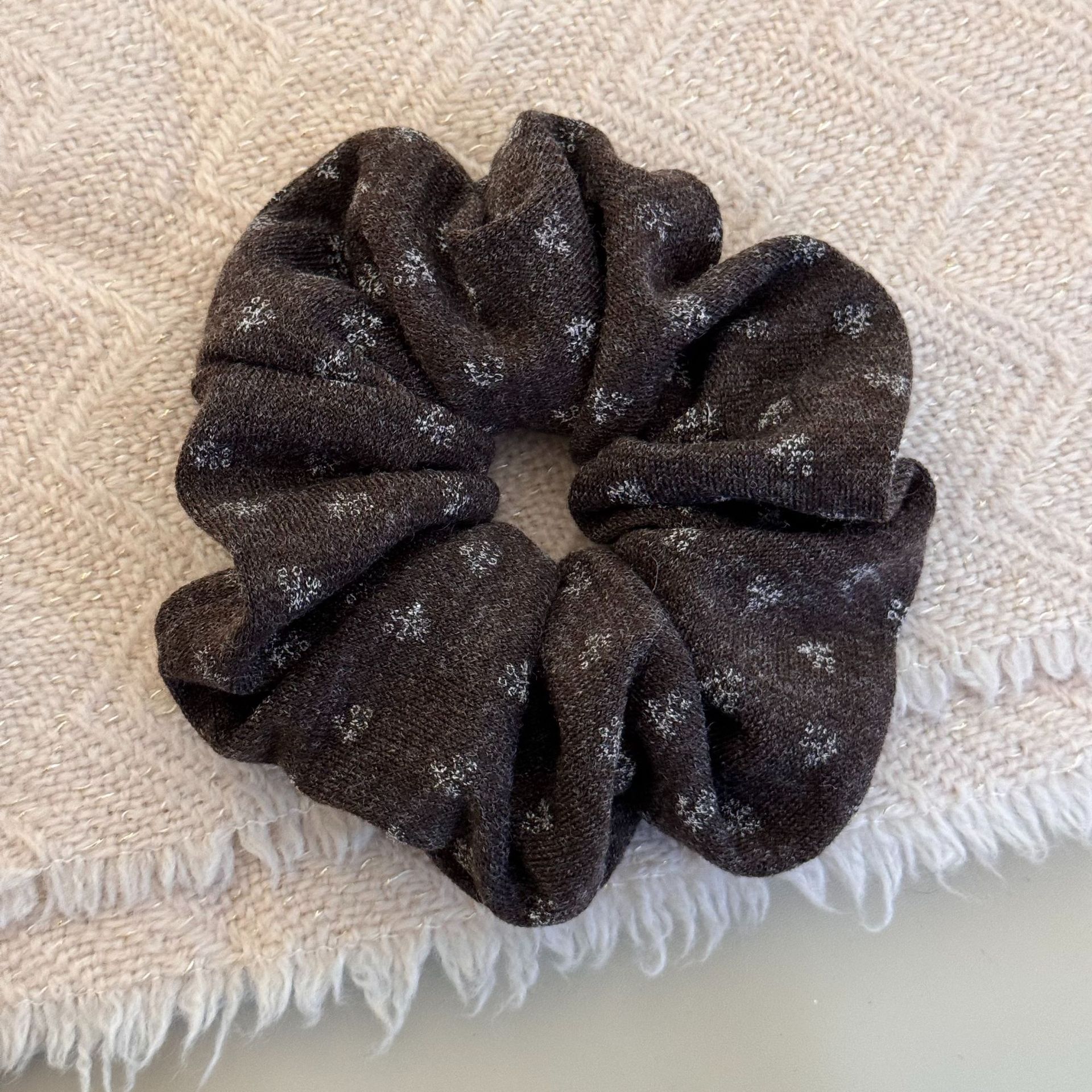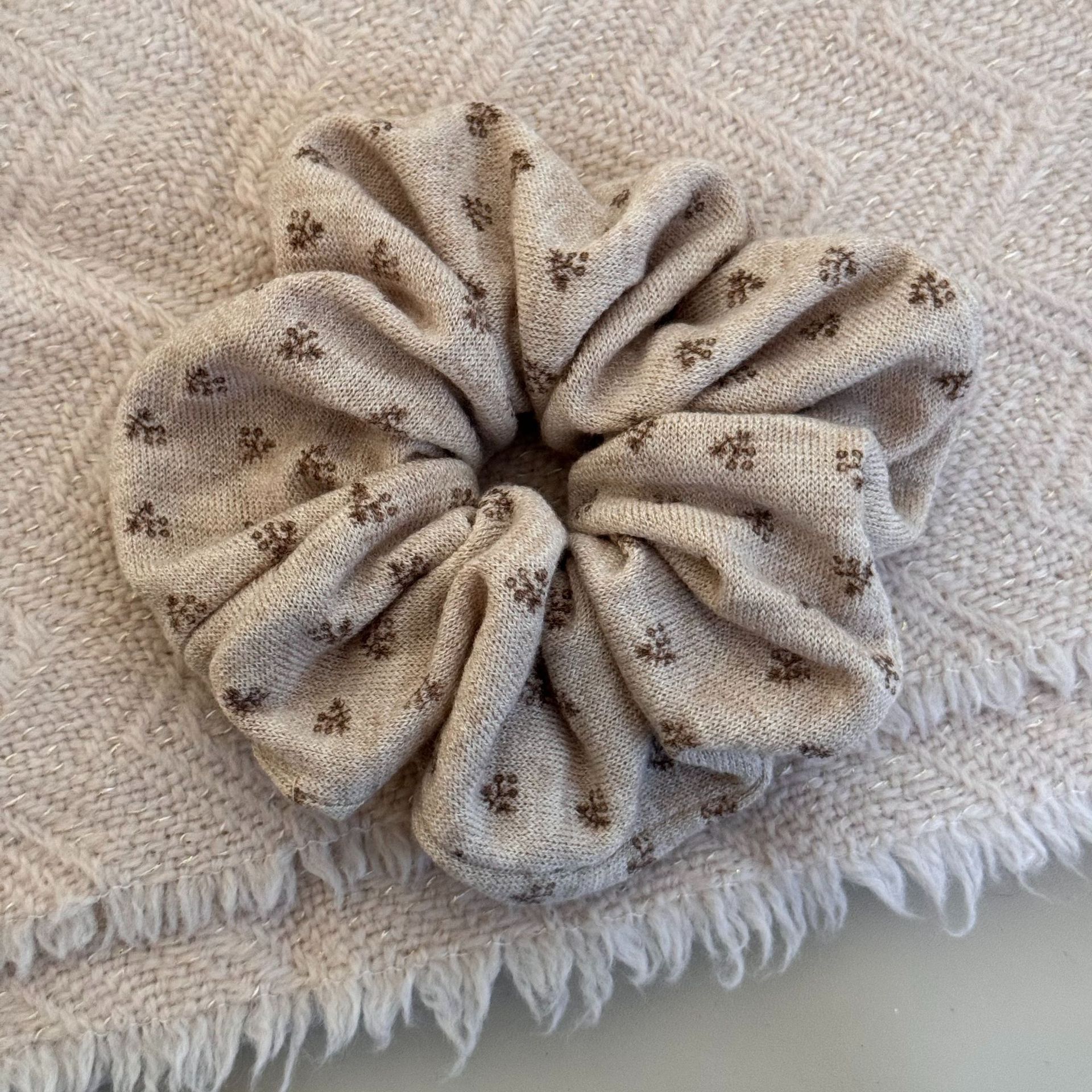 coffee-colored floral hair tie