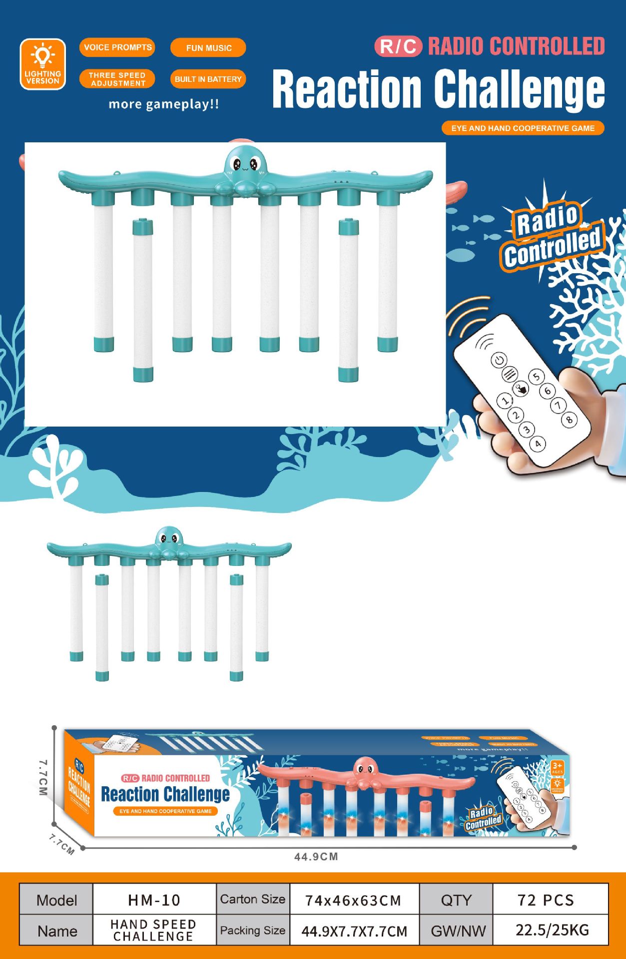 遥控版-8棍八爪鱼眼疾手快-蓝色usb充电版【英文版】