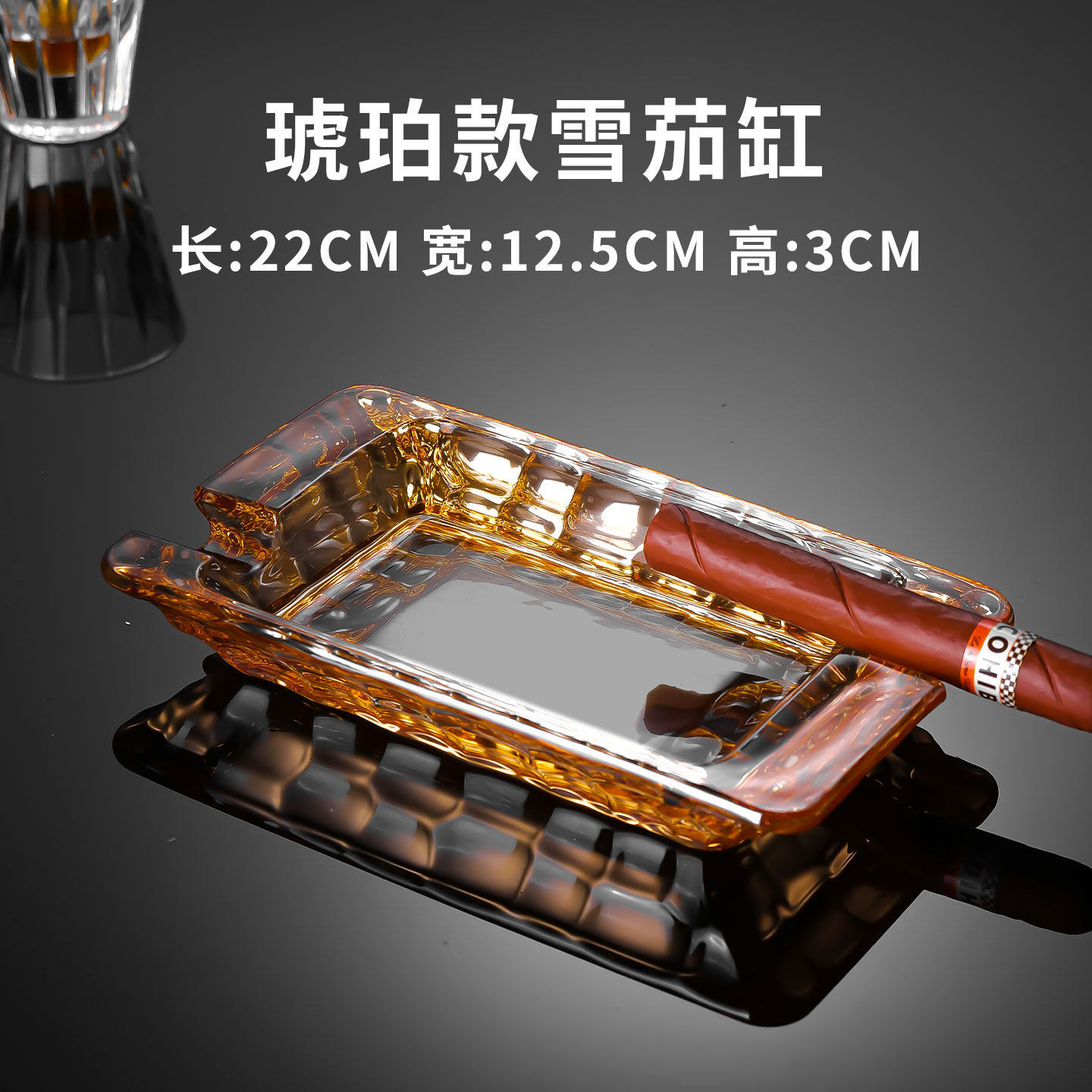 amber water cube crystal ashtray