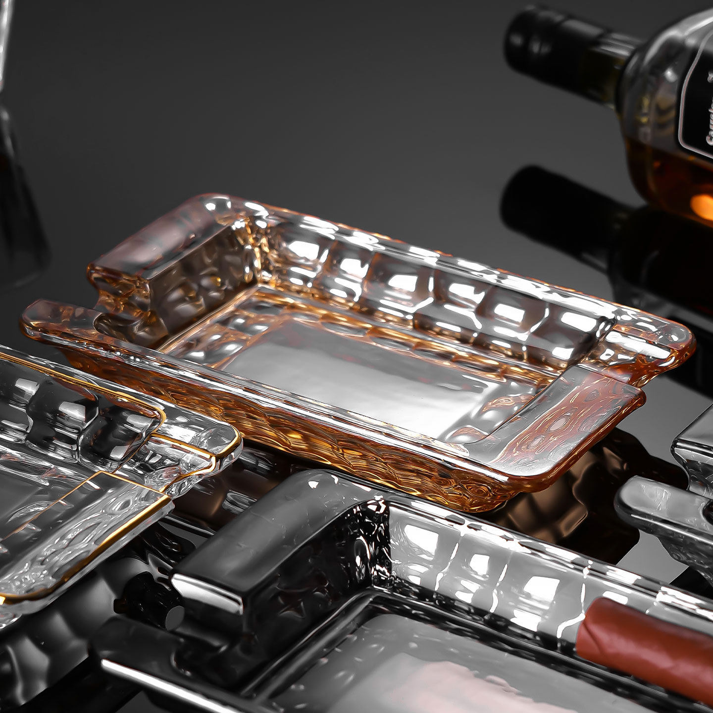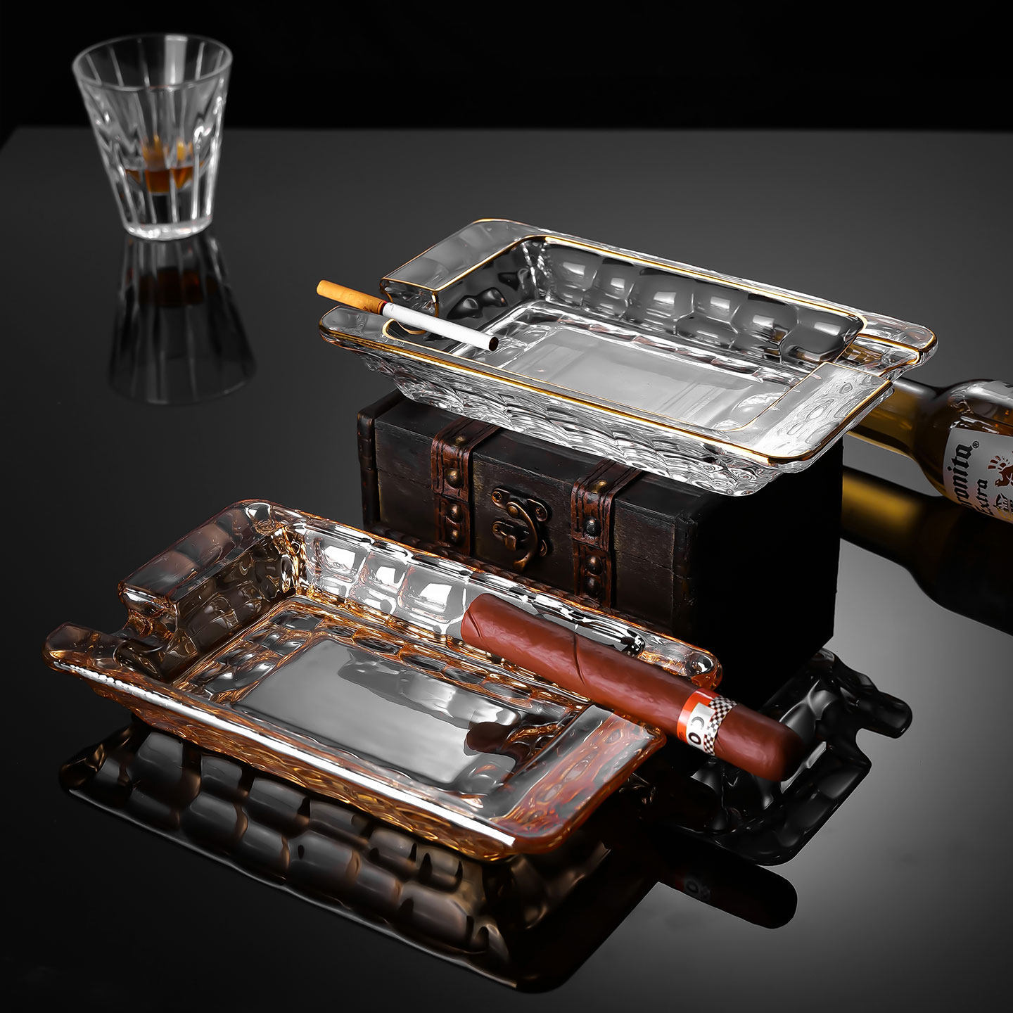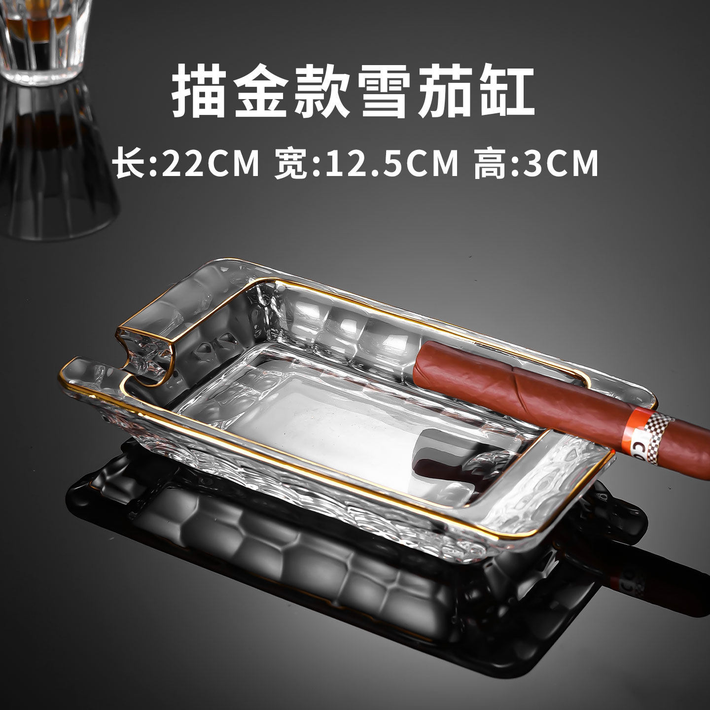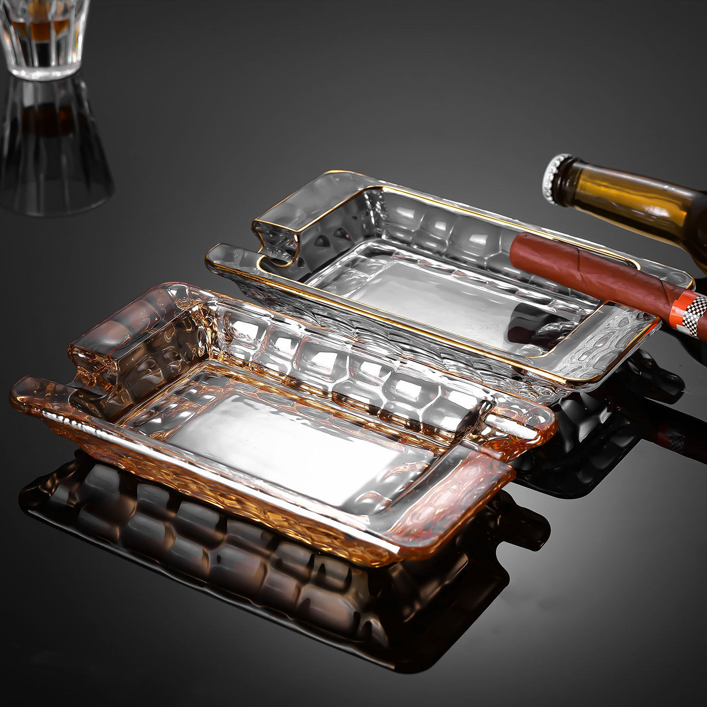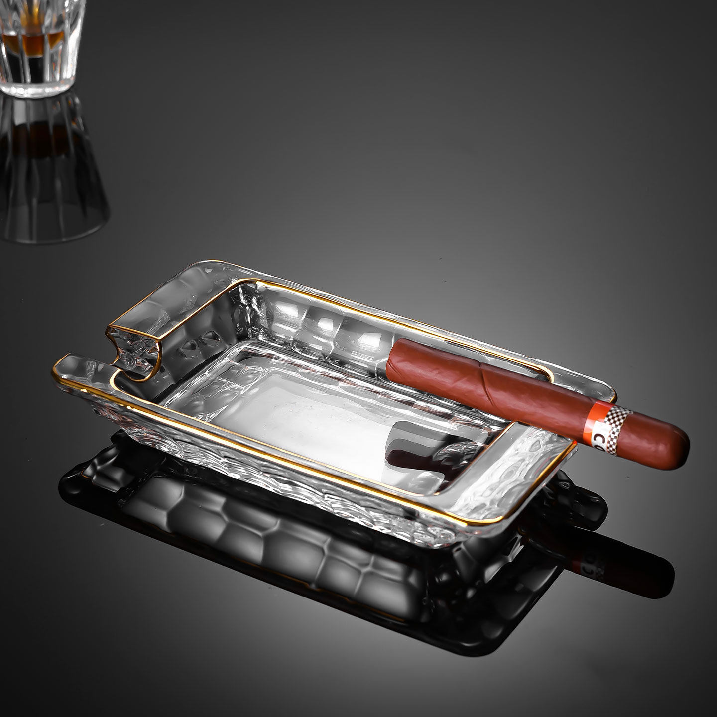 gold-trimmed water cube crystal ashtray