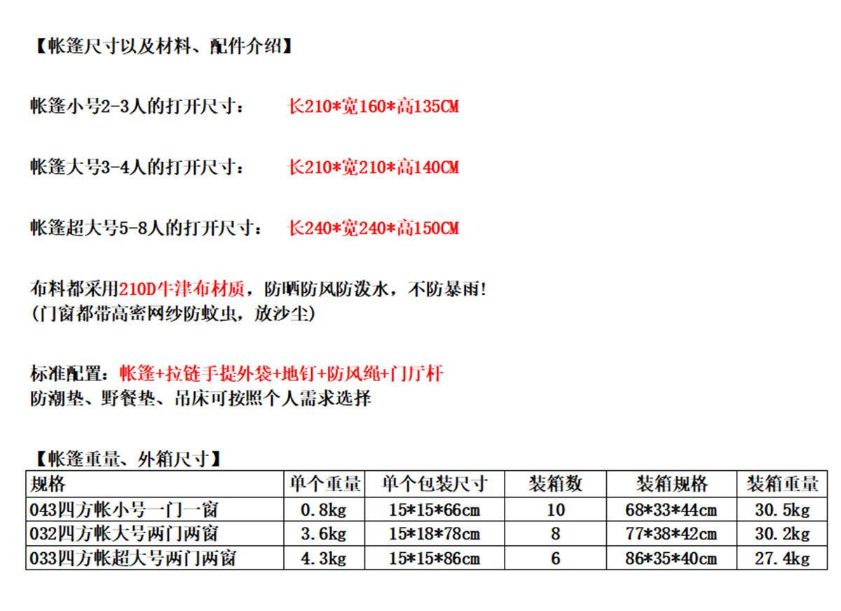 waterproof index of tent bottom: 1000mm (inclusive)-1500mm (exclusive)