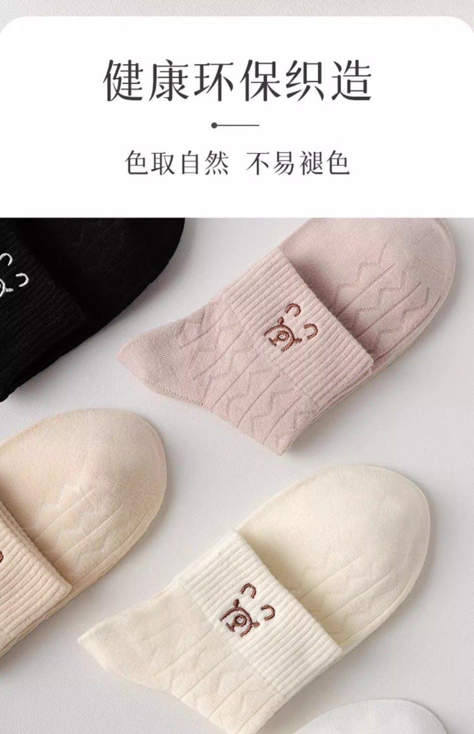 color: women's socks [cotton soft bear], male socks [flat color mixing]]