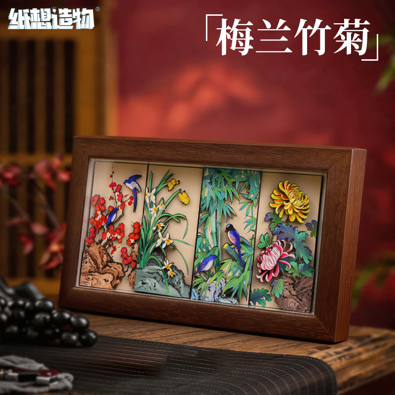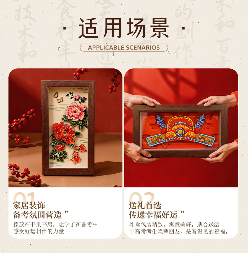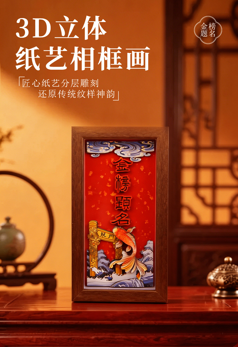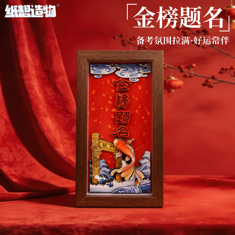 chinese-style national trend 3d stereoscopic paper sculpture painting for college entrance exam success, painting with photo frame ornament as housewarming gift for relatives, friends, and students