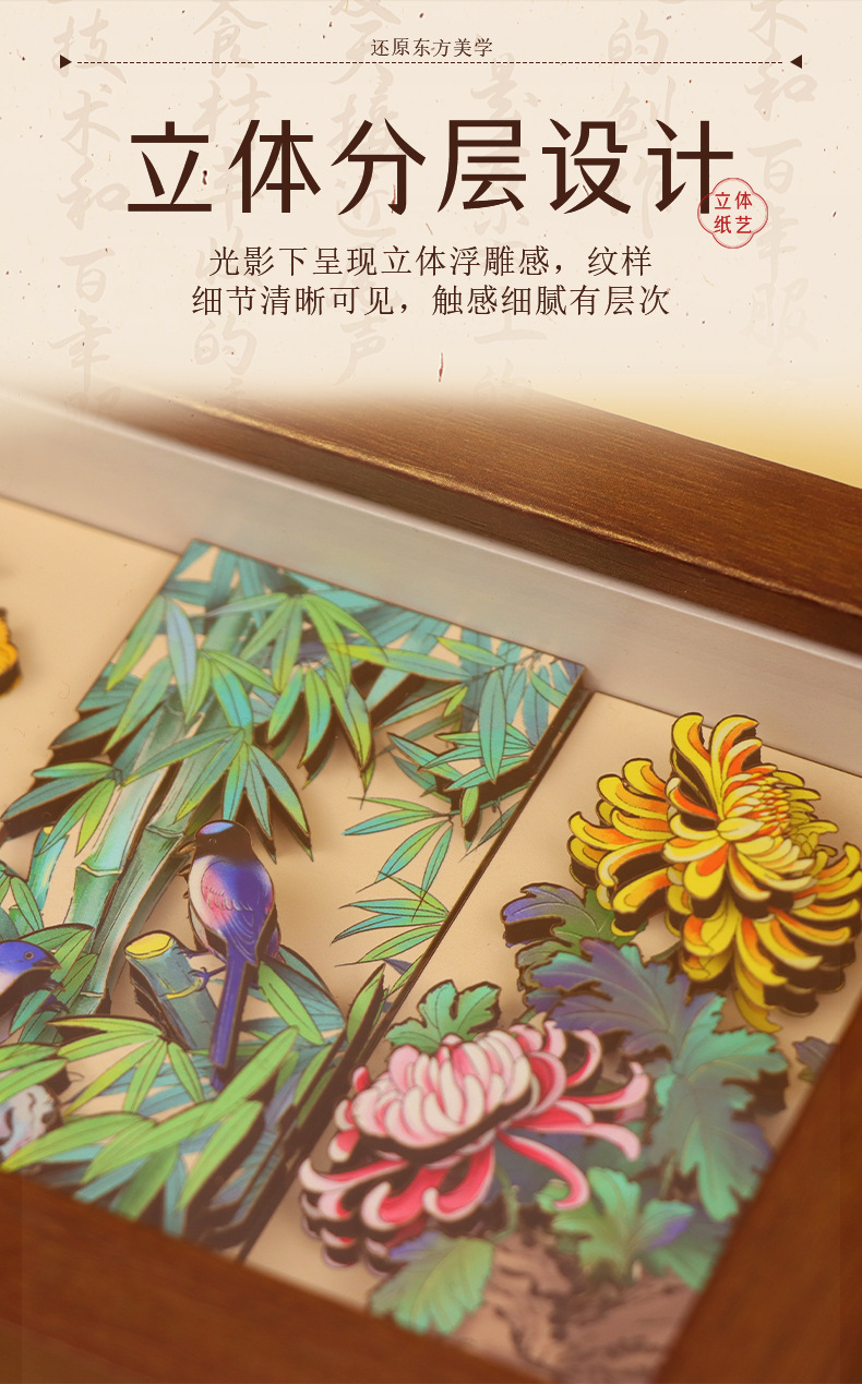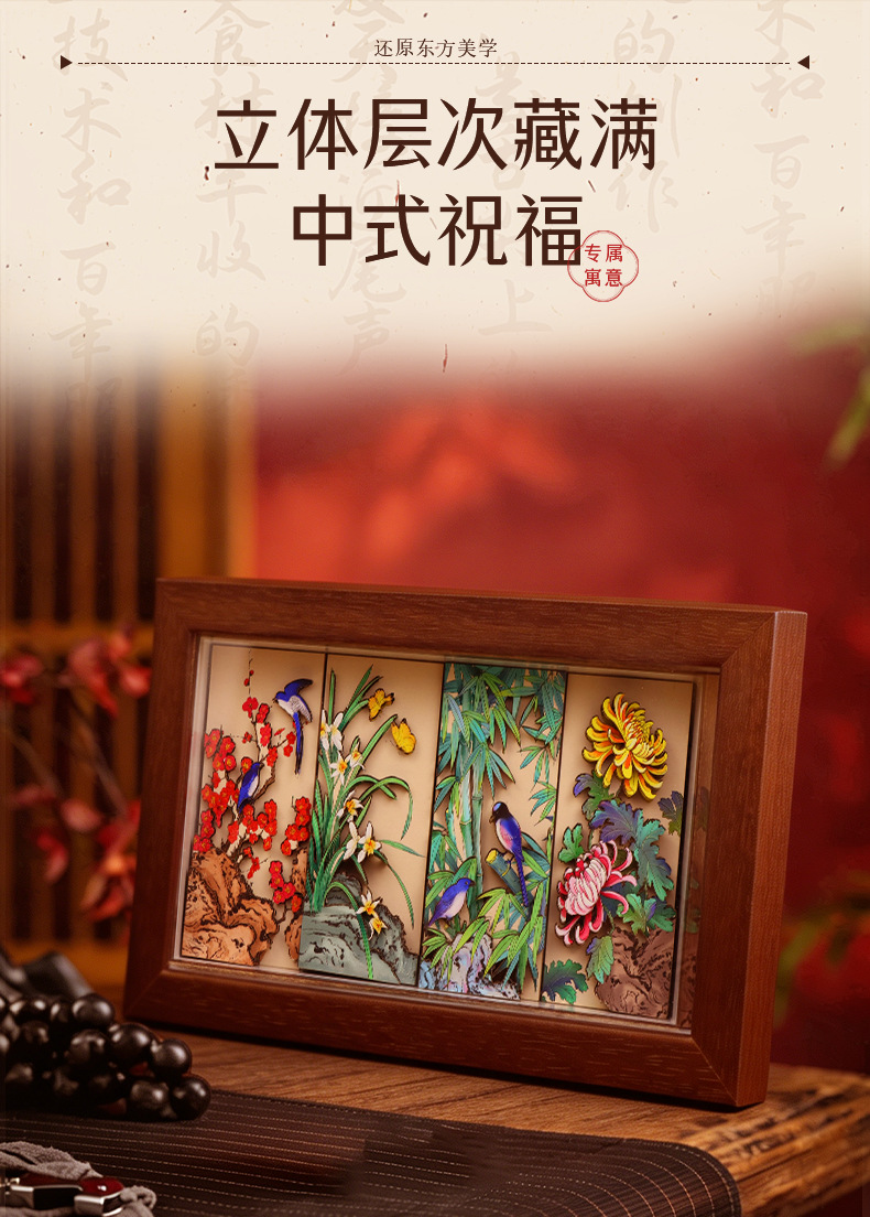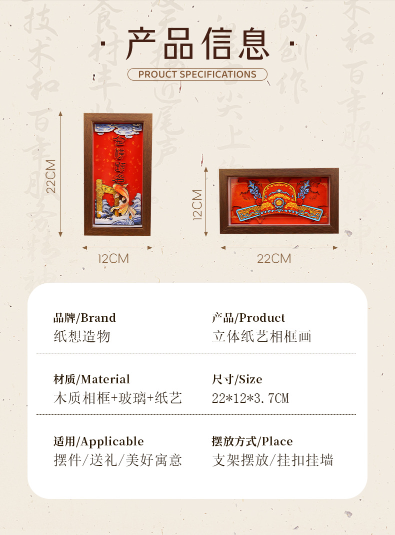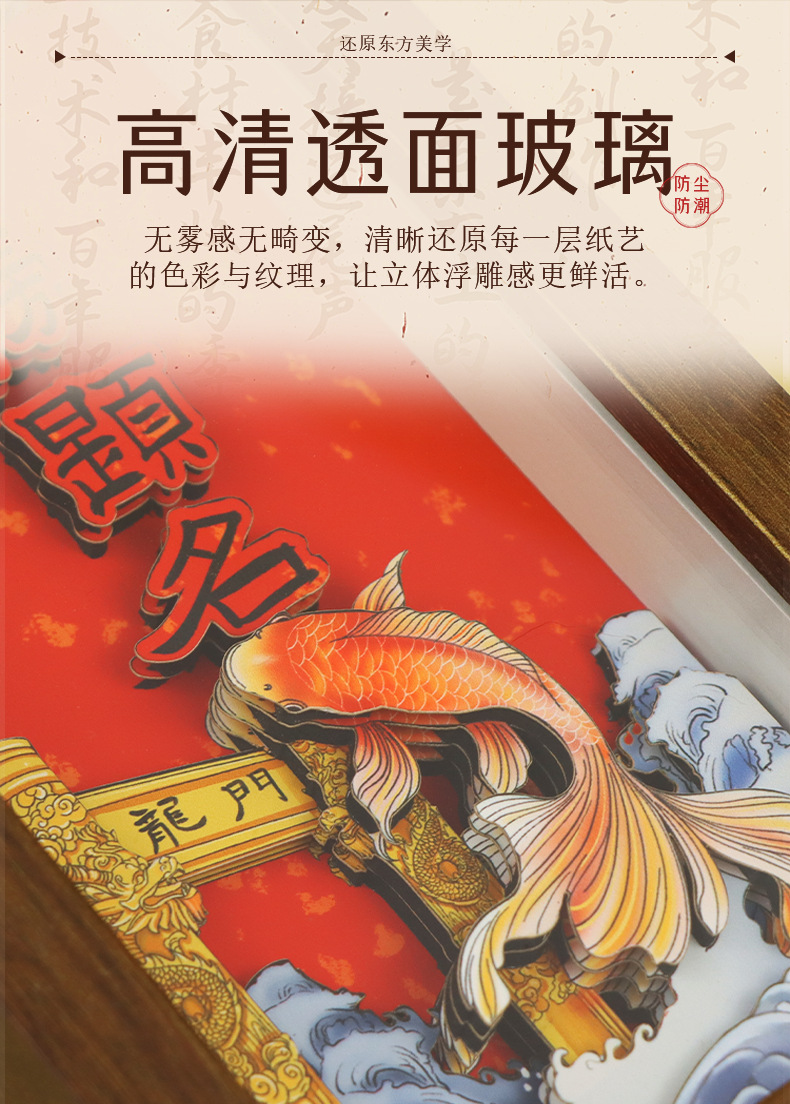 chinese-style national trend 3d stereoscopic paper sculpture painting for college entrance exam success, painting with photo frame ornament as housewarming gift for relatives, friends, and students