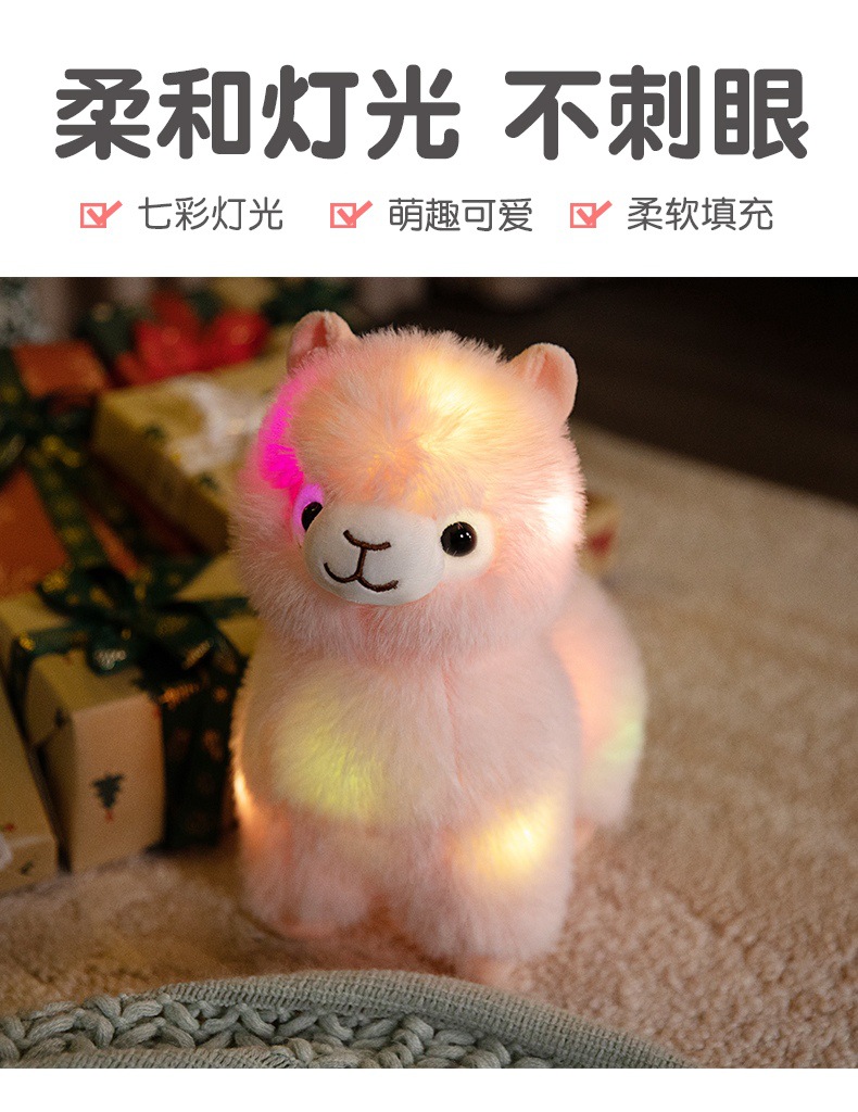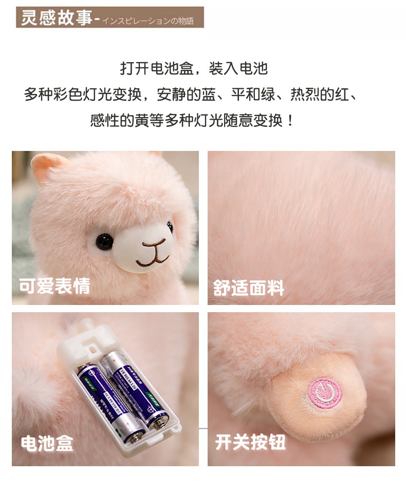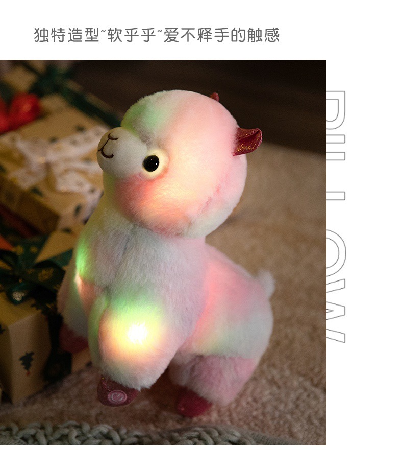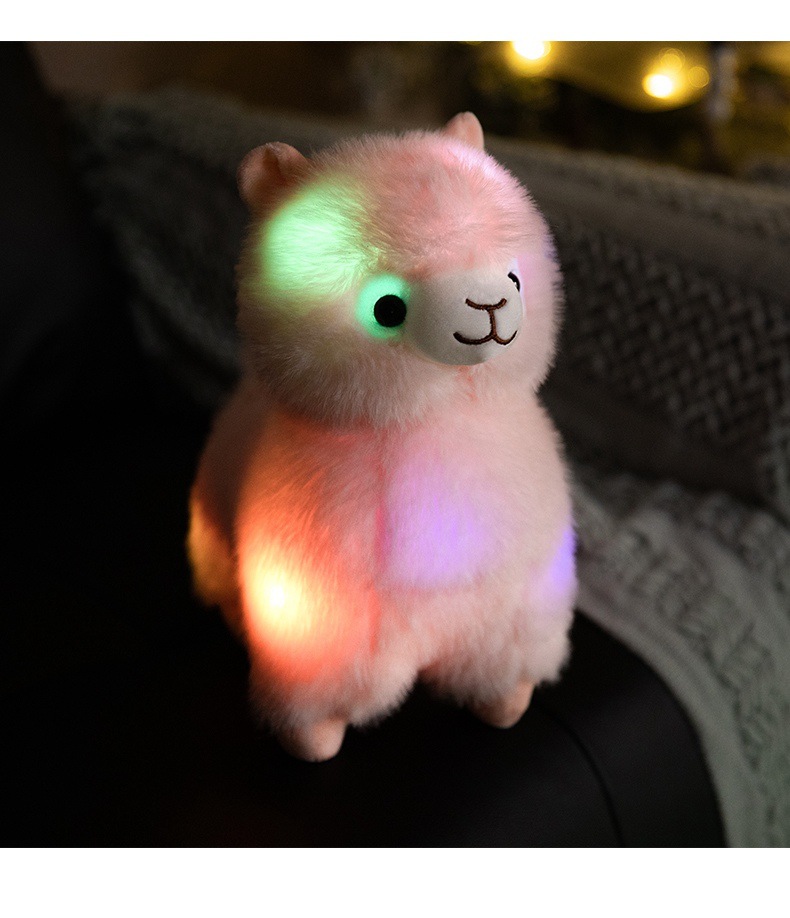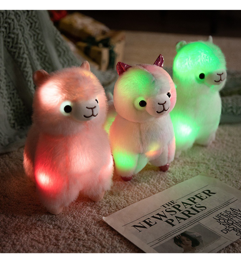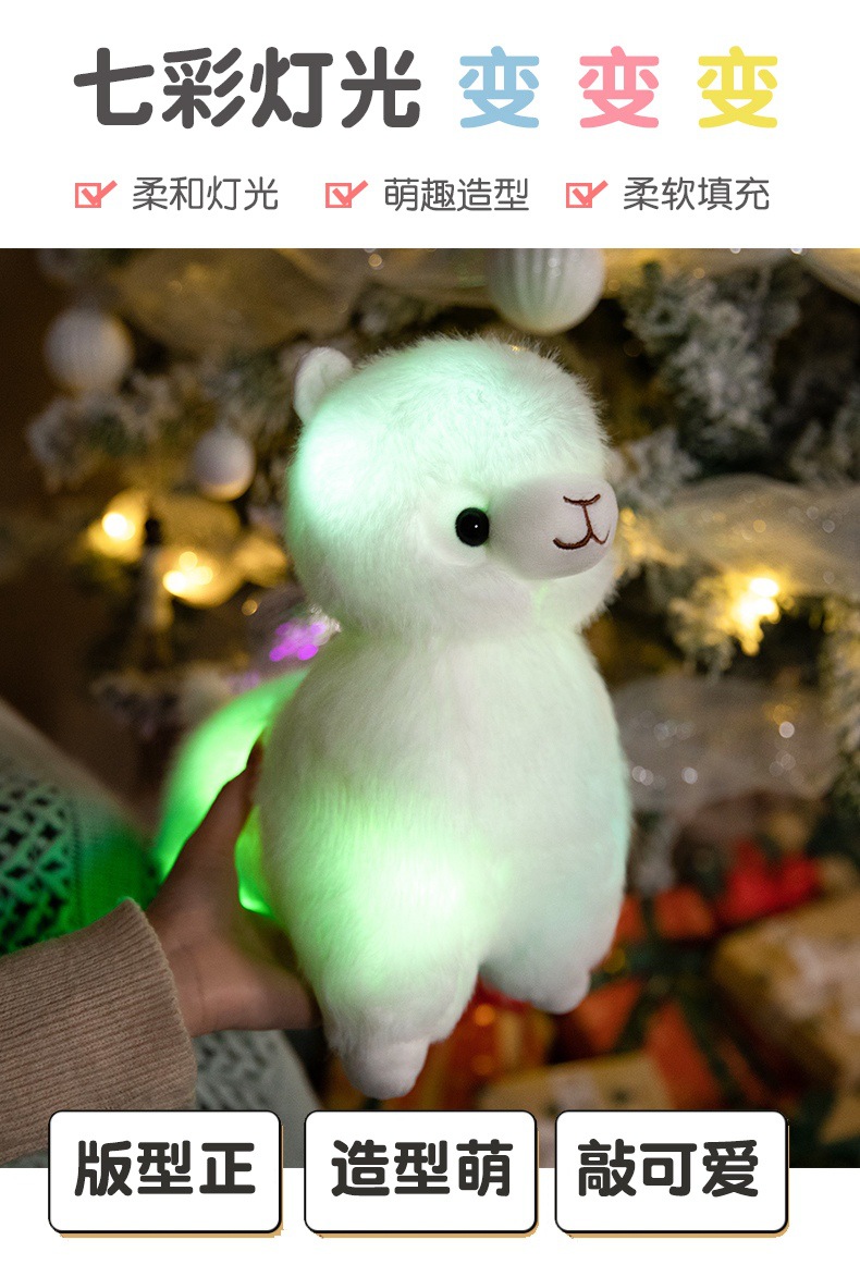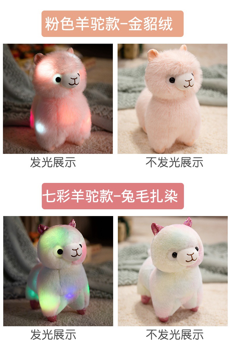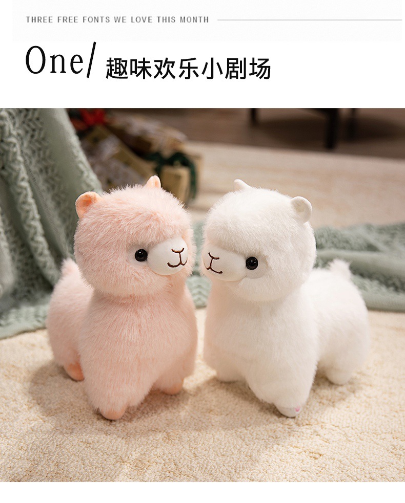 Standing alpaca size about 27cm high, 20cm long, 13cm wide. Weight about 0.28kg.