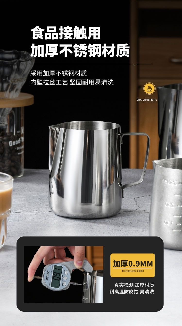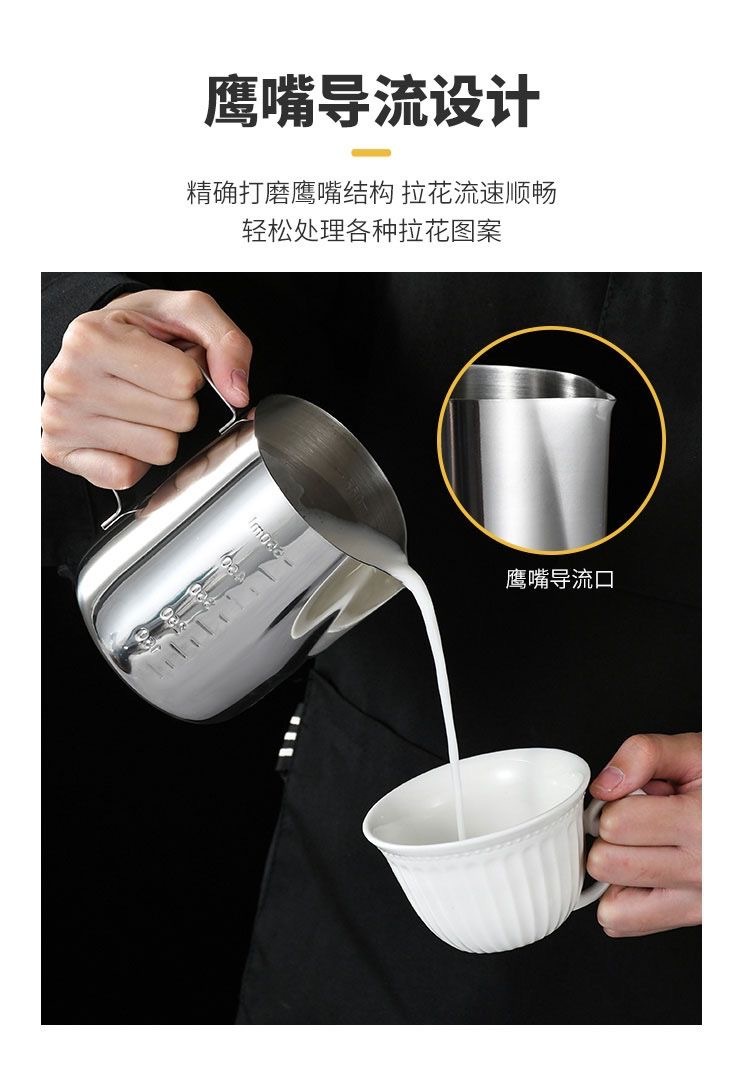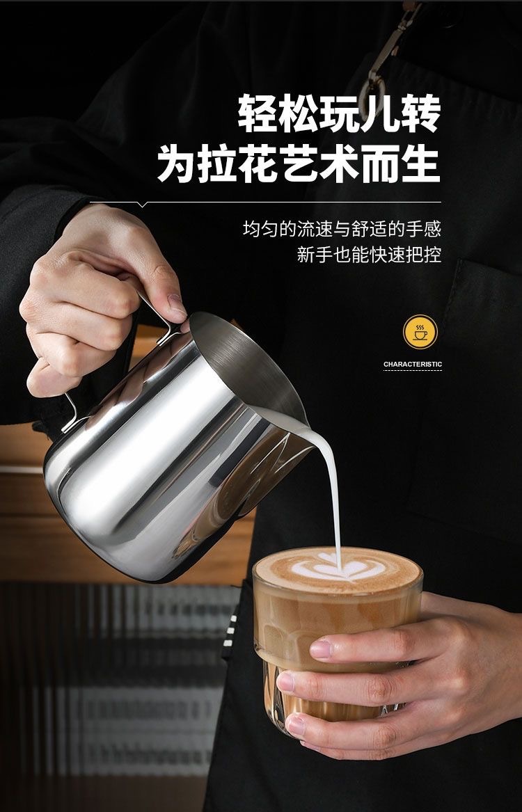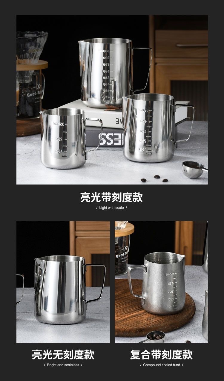 stainless steel latte art milk cup, frothing pitcher, milk frother, milk frothing cup, specialty coffee cup, coffee tools, cross-border supply