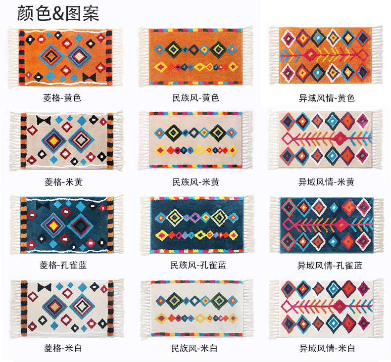 color: checkered + tassel-yellow, checkered + tassel-blue, checkered