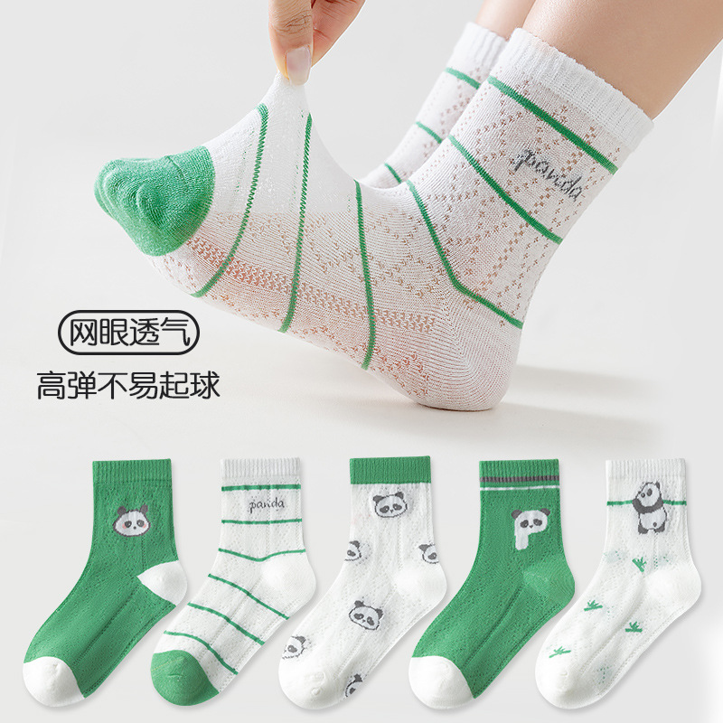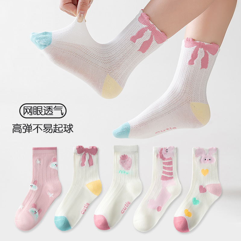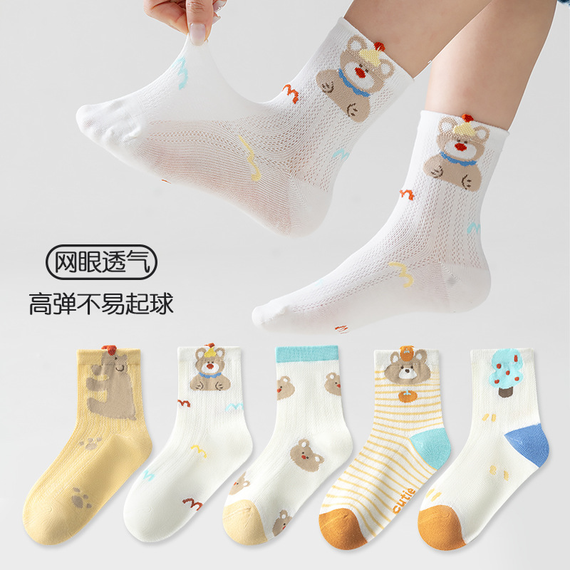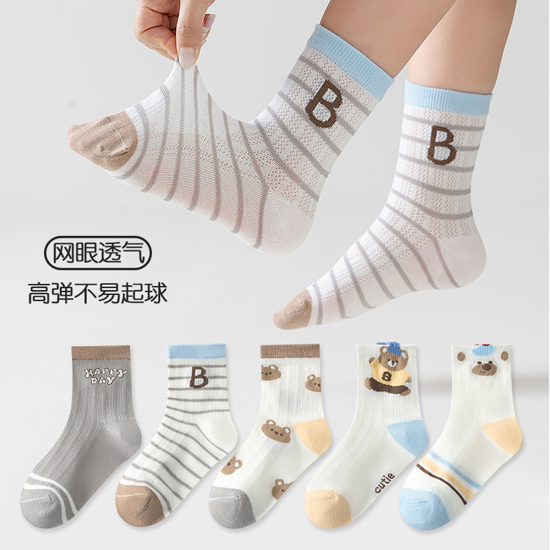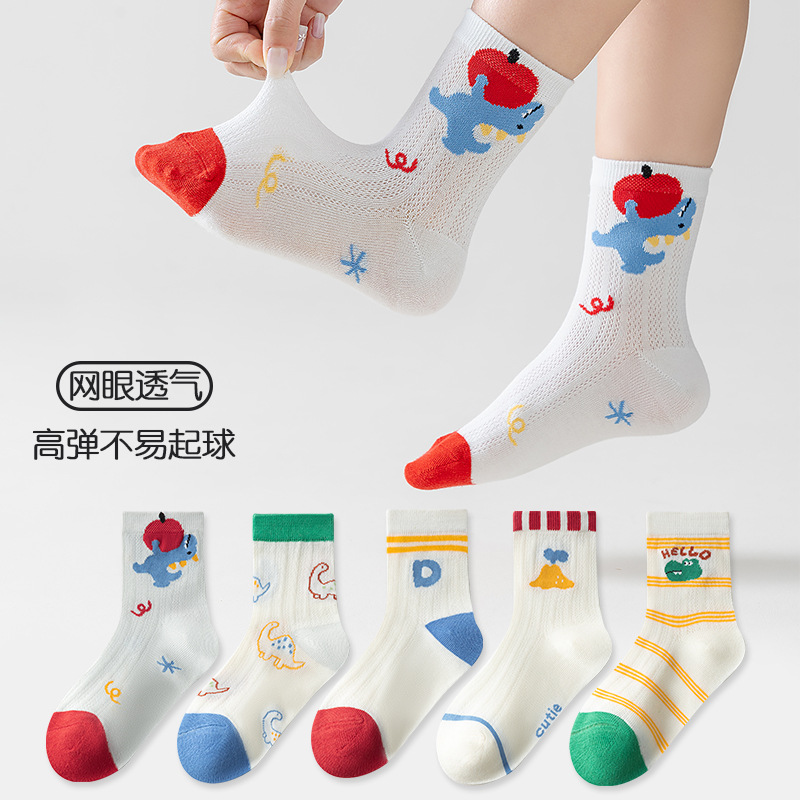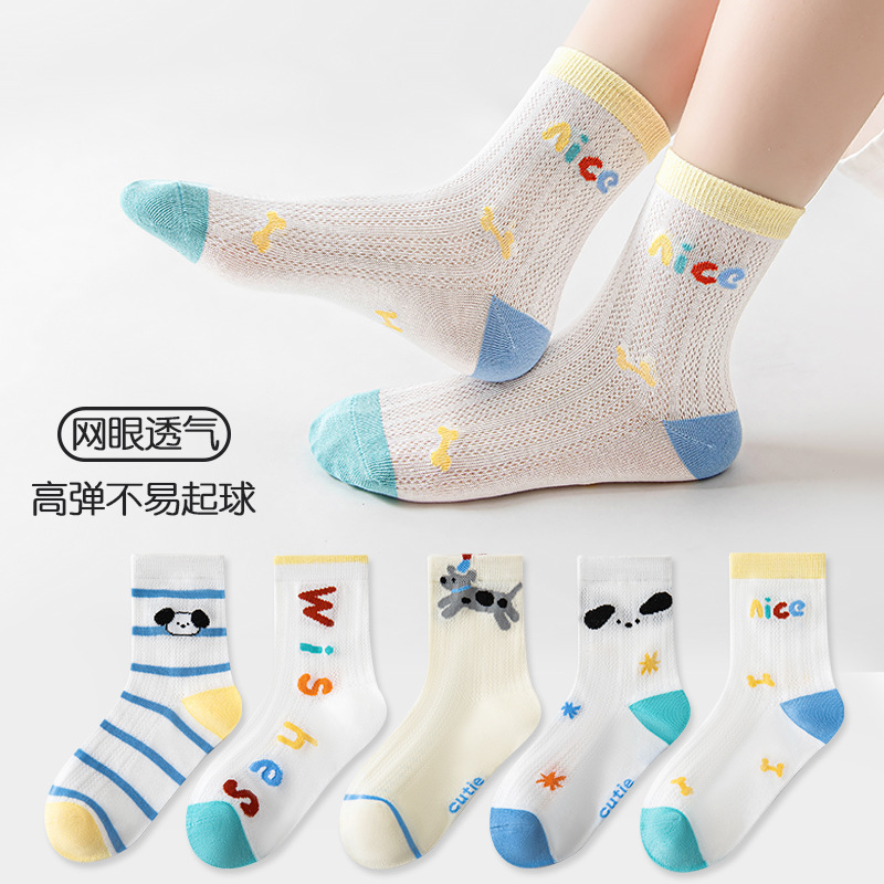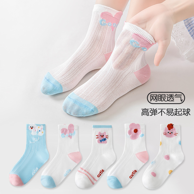 five-pair double set spring/summer thin socks anti-pilling mesh tube socks for children's socks boy girl baby socks