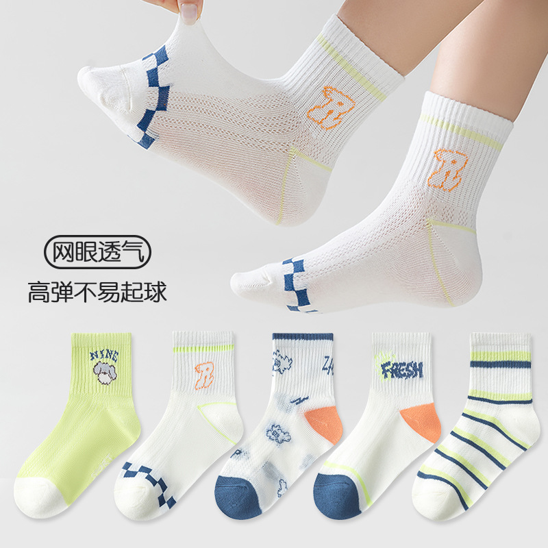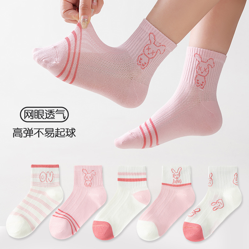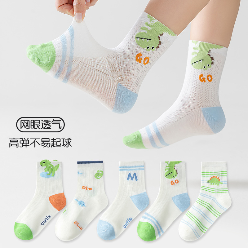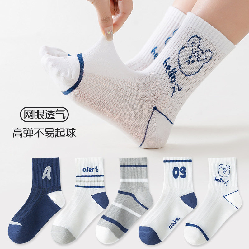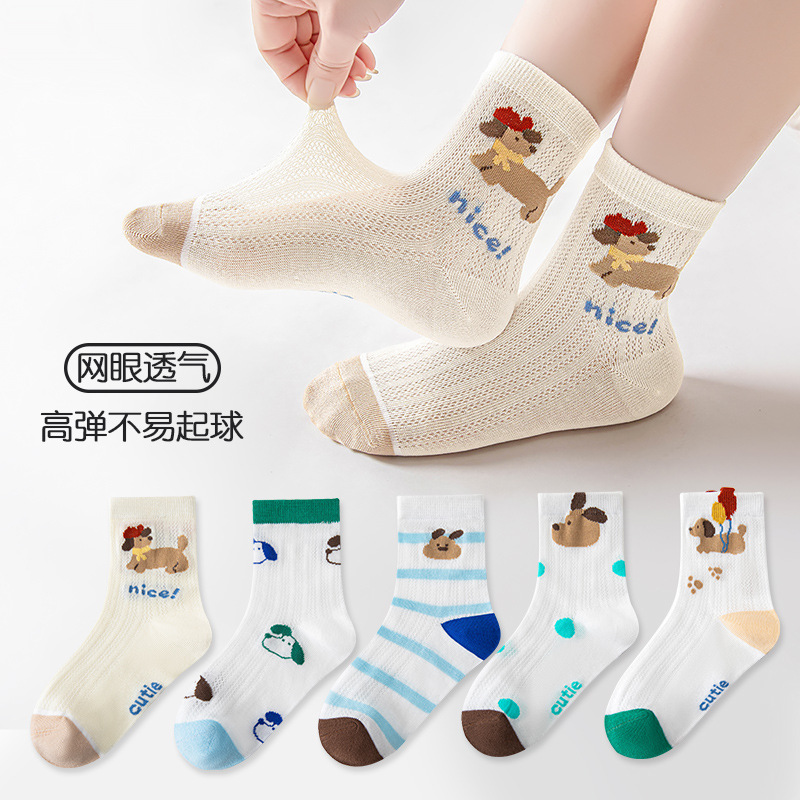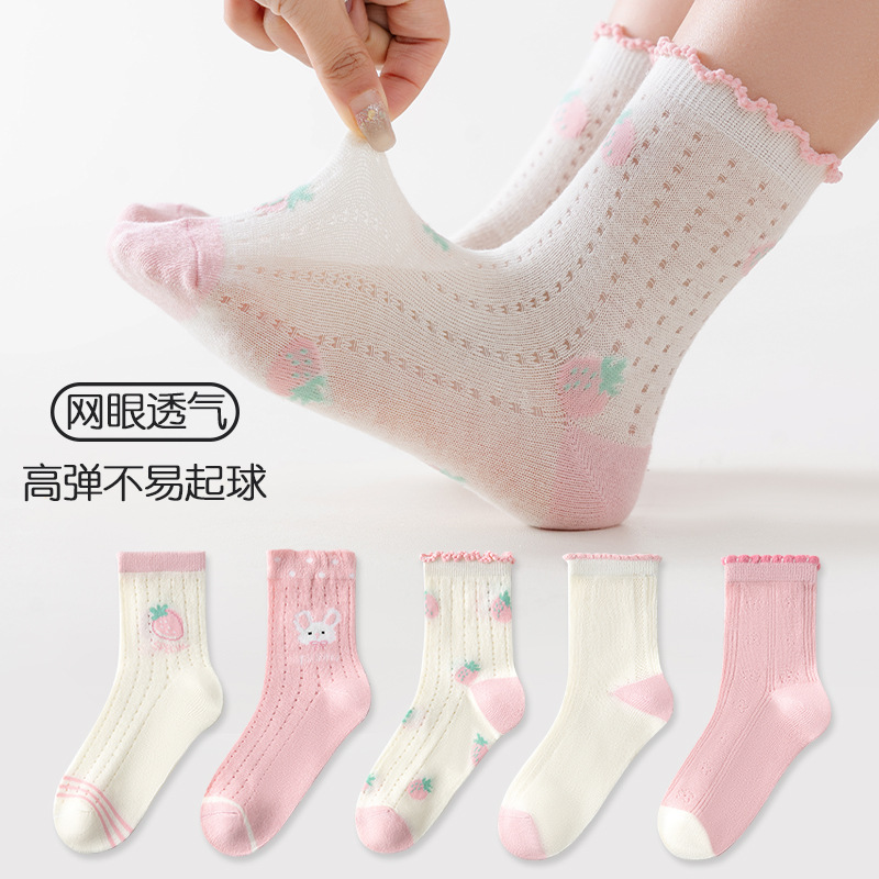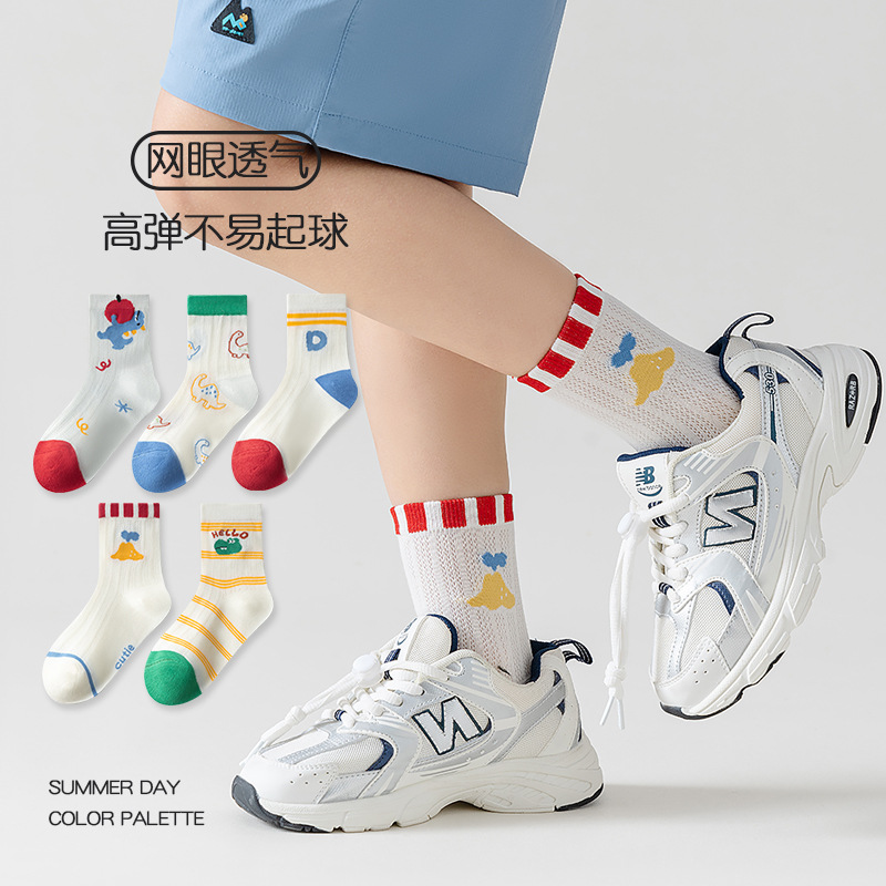 five-pair double set spring/summer thin socks anti-pilling mesh tube socks for children's socks boy girl baby socks