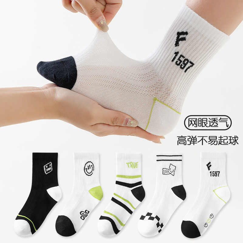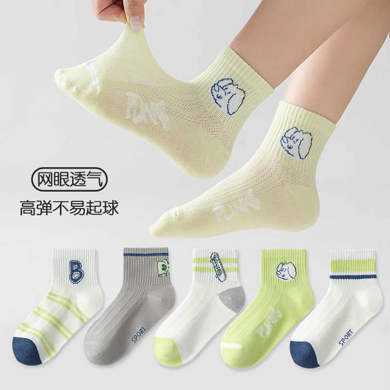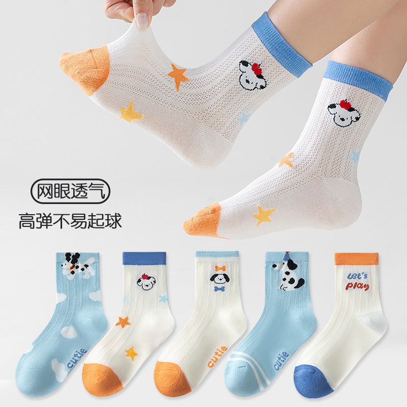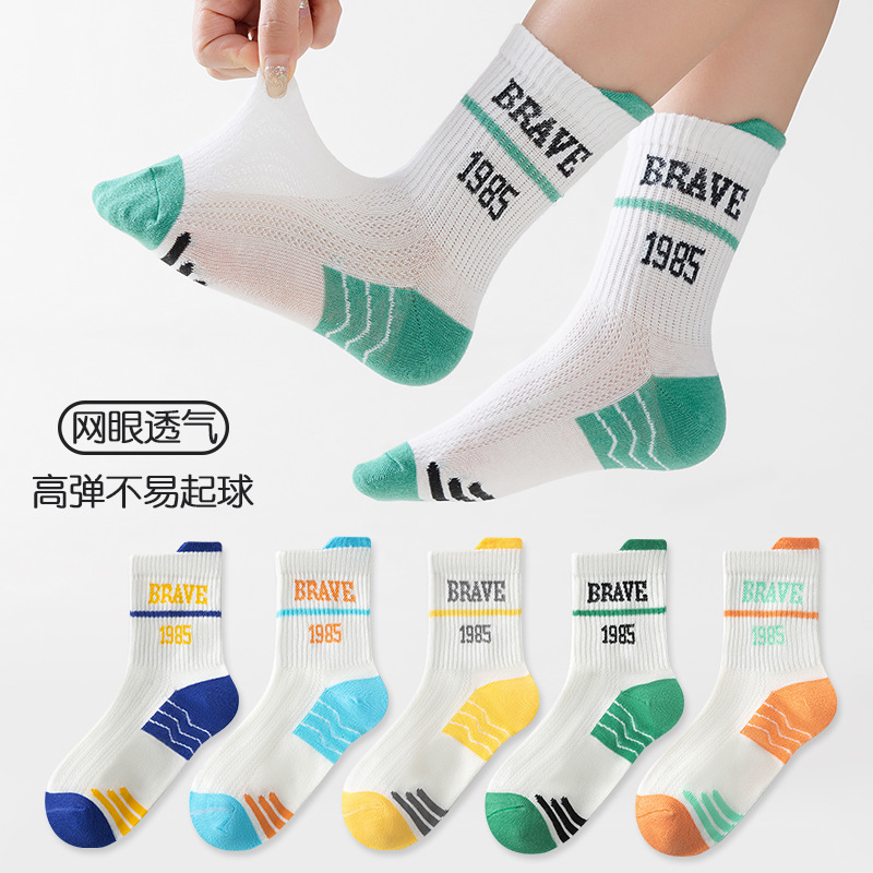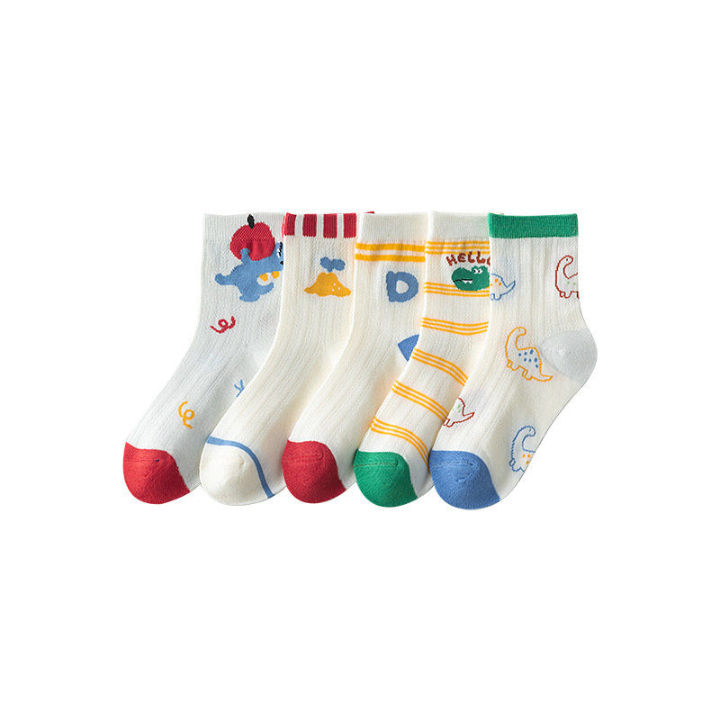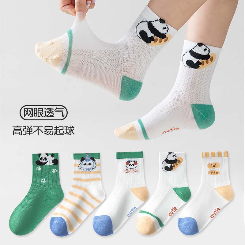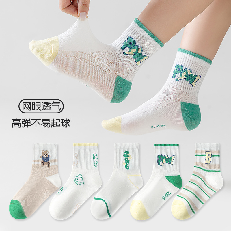 five-pair double set spring/summer thin socks anti-pilling mesh tube socks for children's socks boy girl baby socks