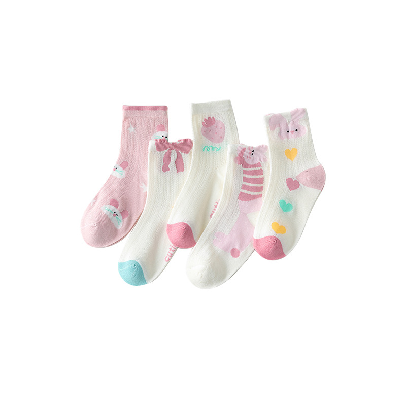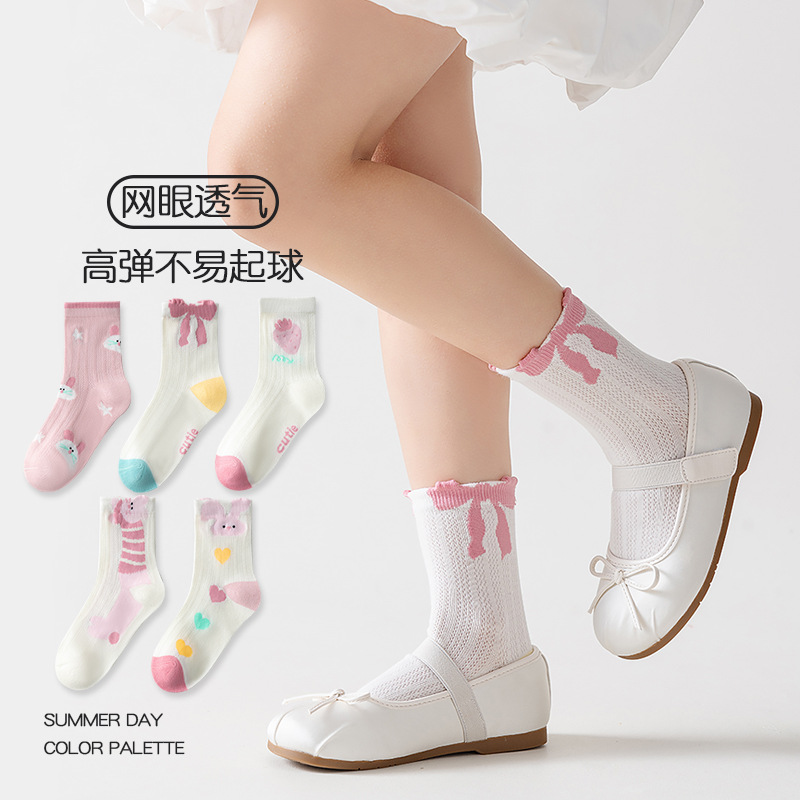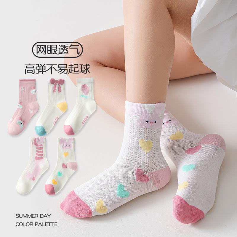 five-pair double set spring/summer thin socks anti-pilling mesh tube socks for children's socks boy girl baby socks