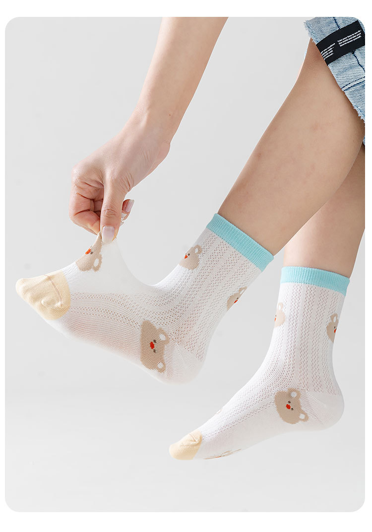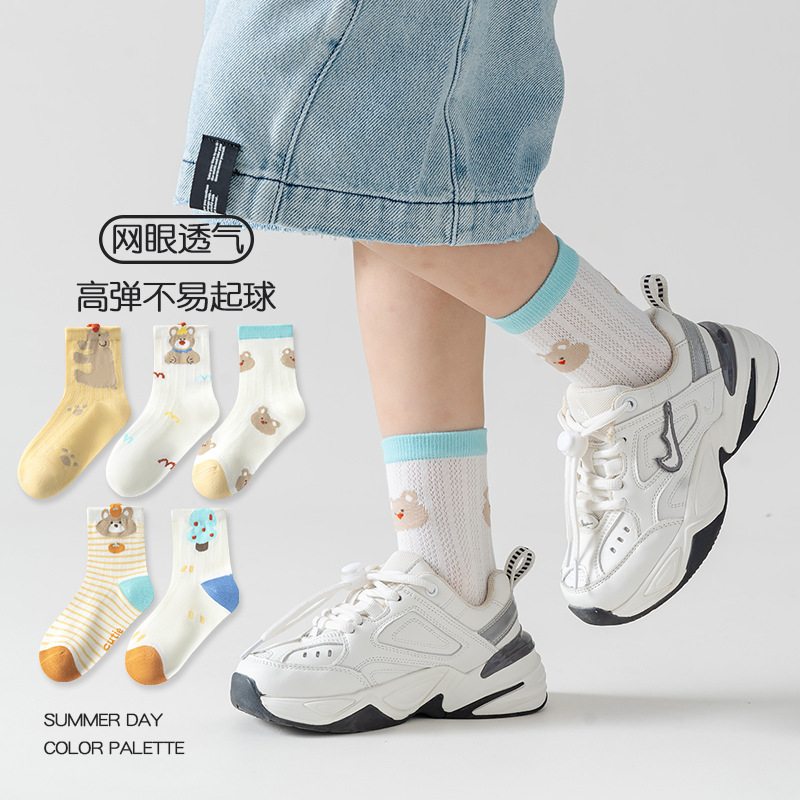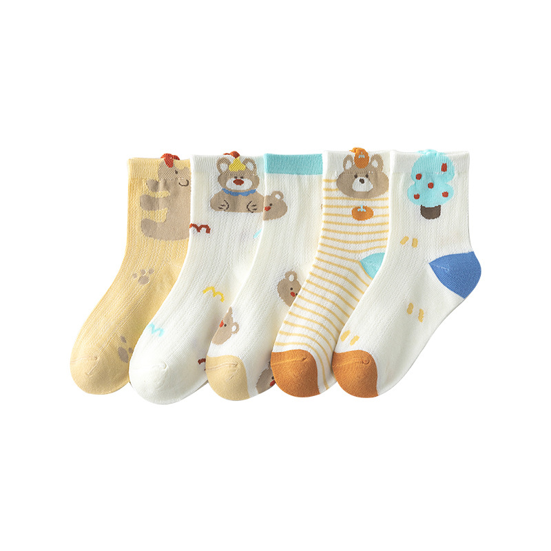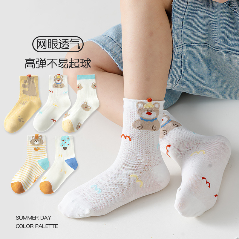 five-pair double set spring/summer thin socks anti-pilling mesh tube socks for children's socks boy girl baby socks