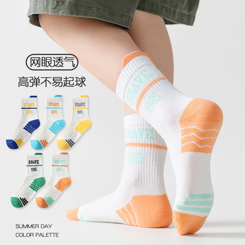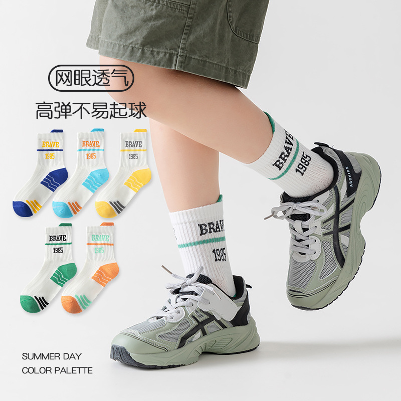 five-pair double set spring/summer thin socks anti-pilling mesh tube socks for children's socks boy girl baby socks
