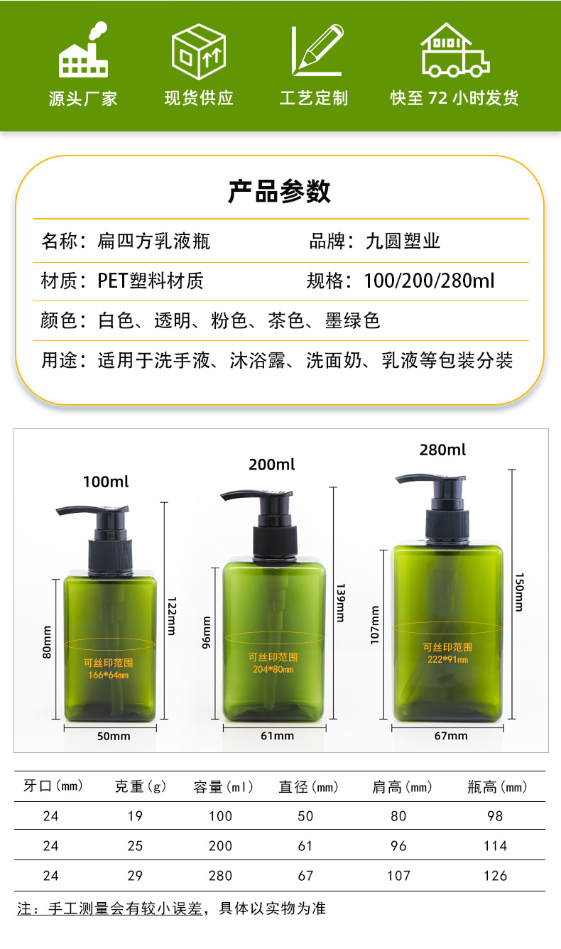| 280ml; dark green bottle + black pump head; pet | CN¥ 1.32 |