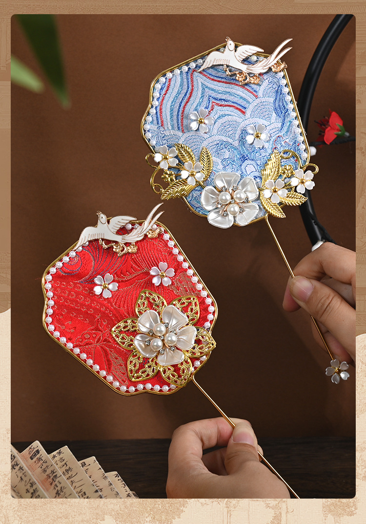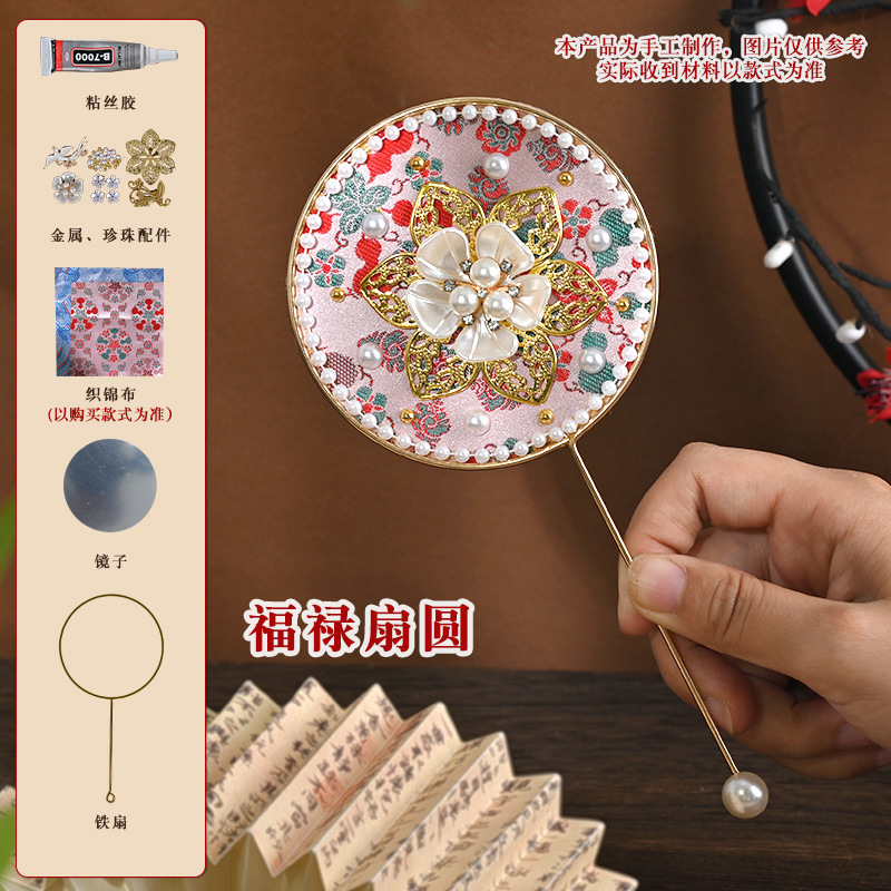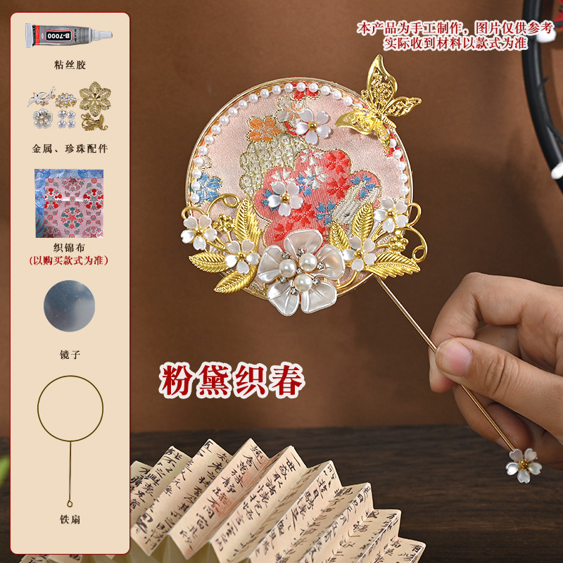 brocade national style small circular fan suit-pink dai woven spring