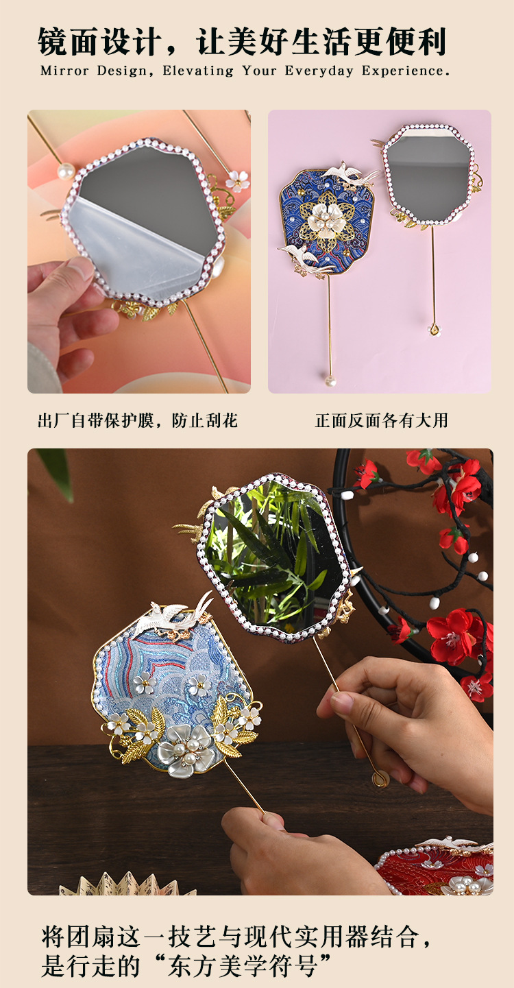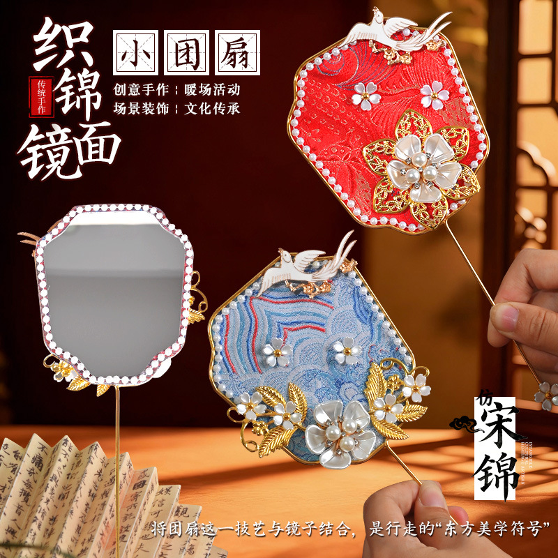 brocade mirror national style small circular fan random 10 sets