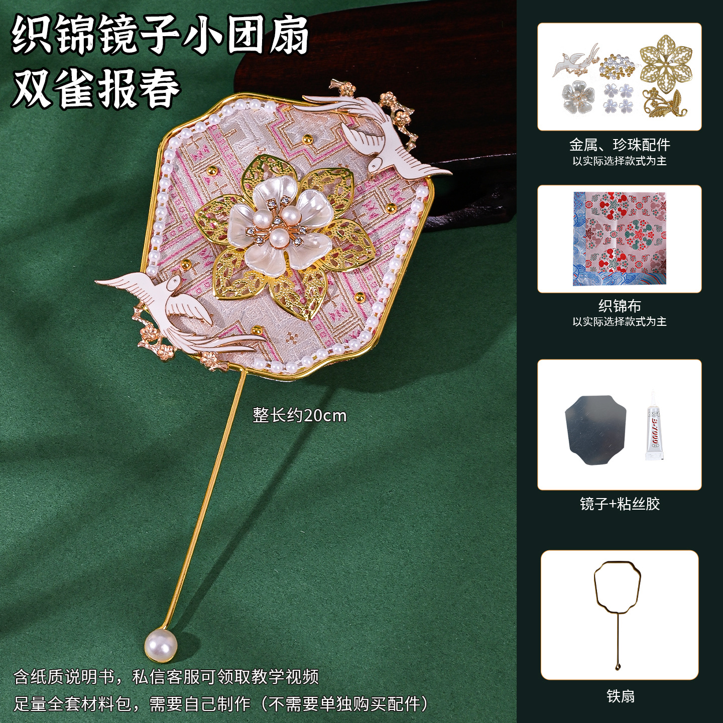 brocade national style small circular fan suit-green brocade more blessed