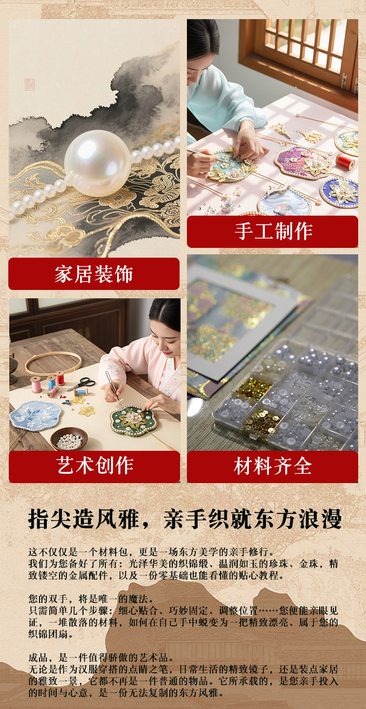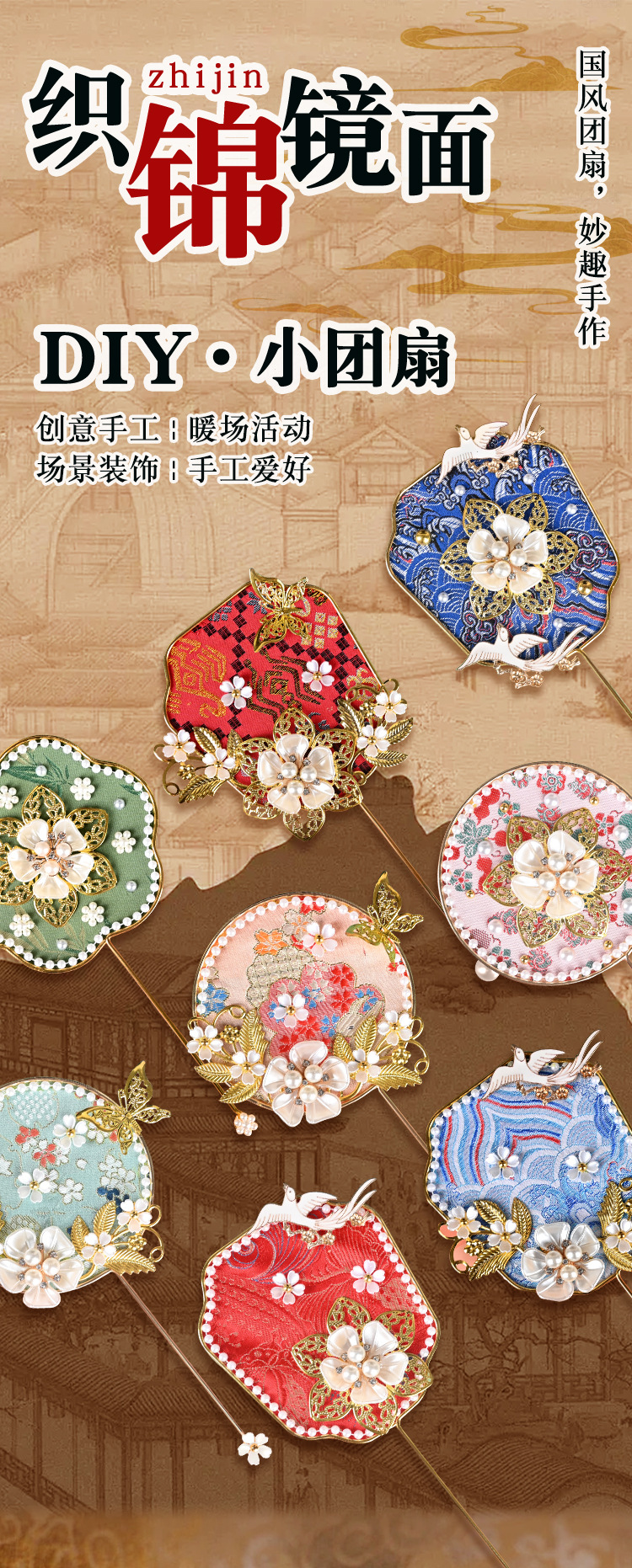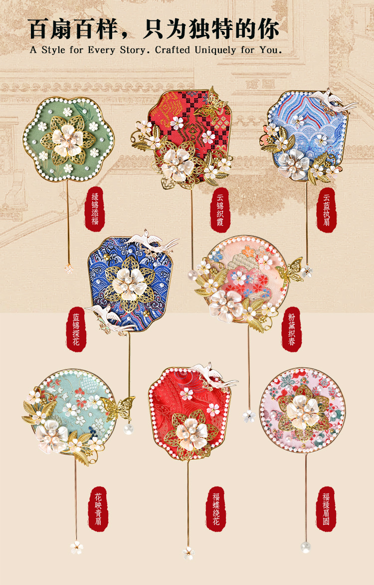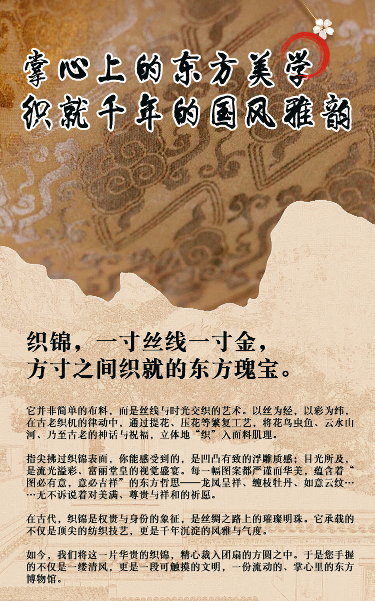 brocade national style small circular fan suit-yunjin zhu xia