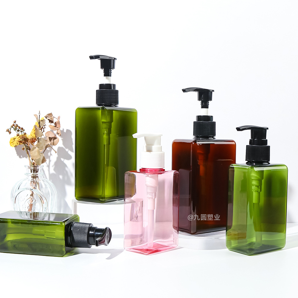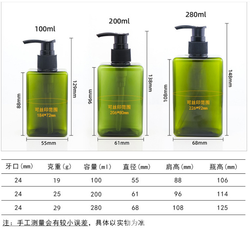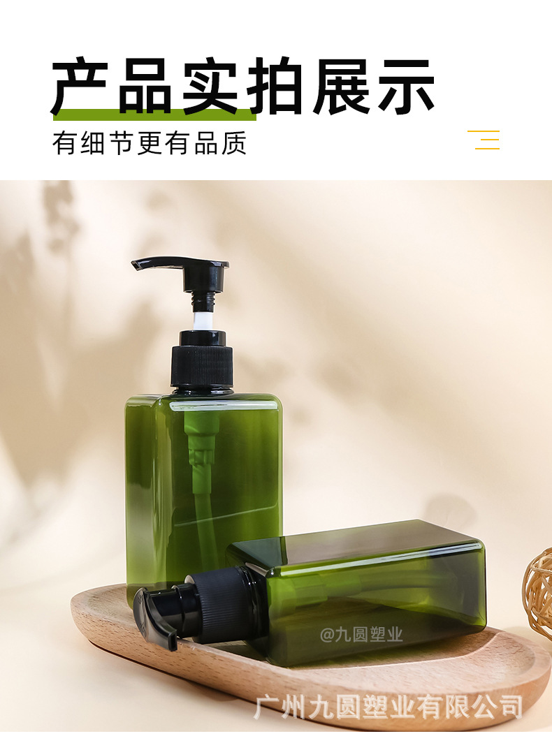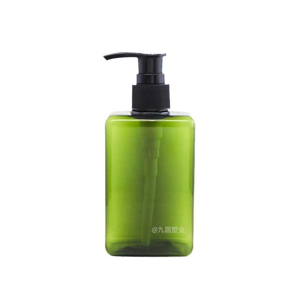 280 ml; olive-green bottle with black pump; pet
