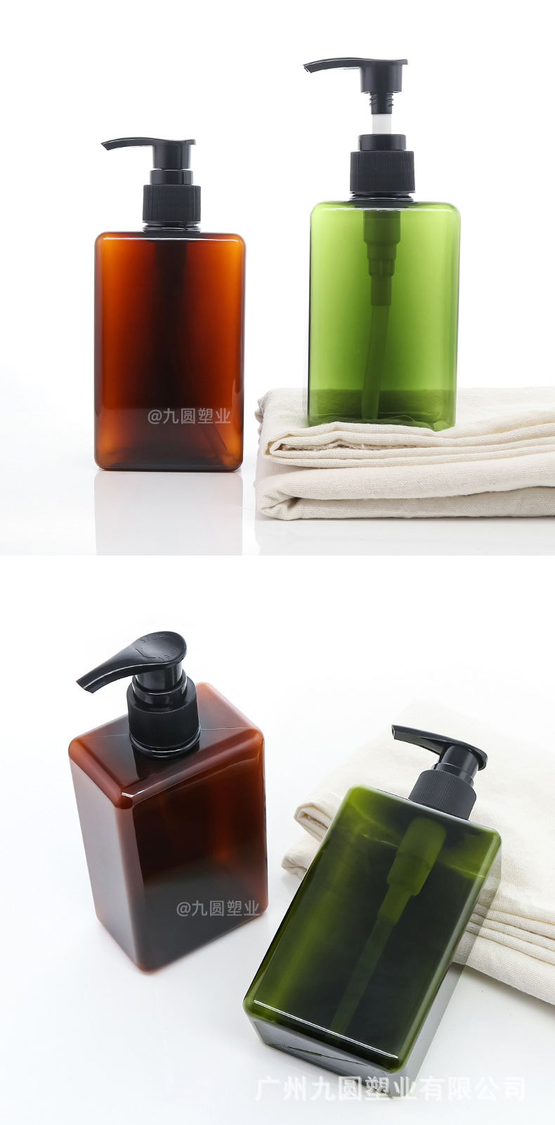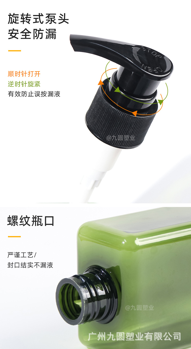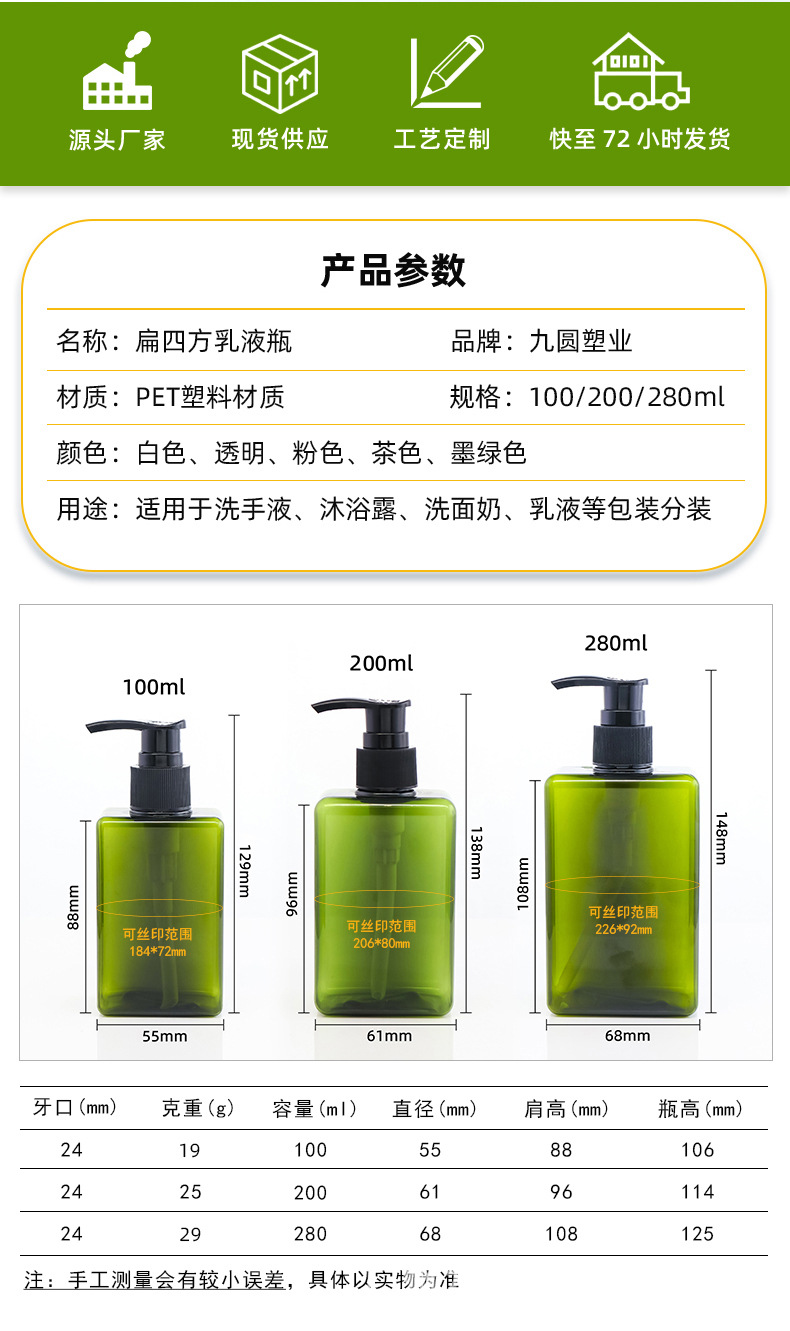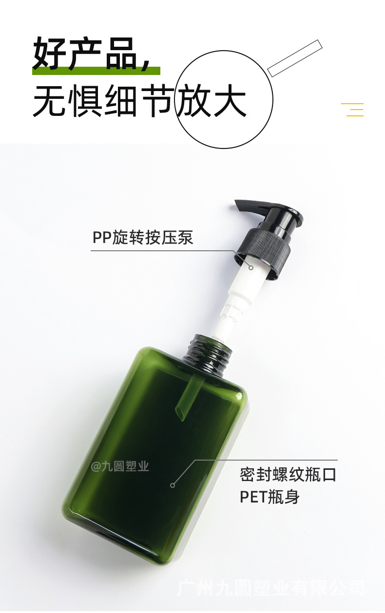 280 ml; olive-green bottle with black pump; pet