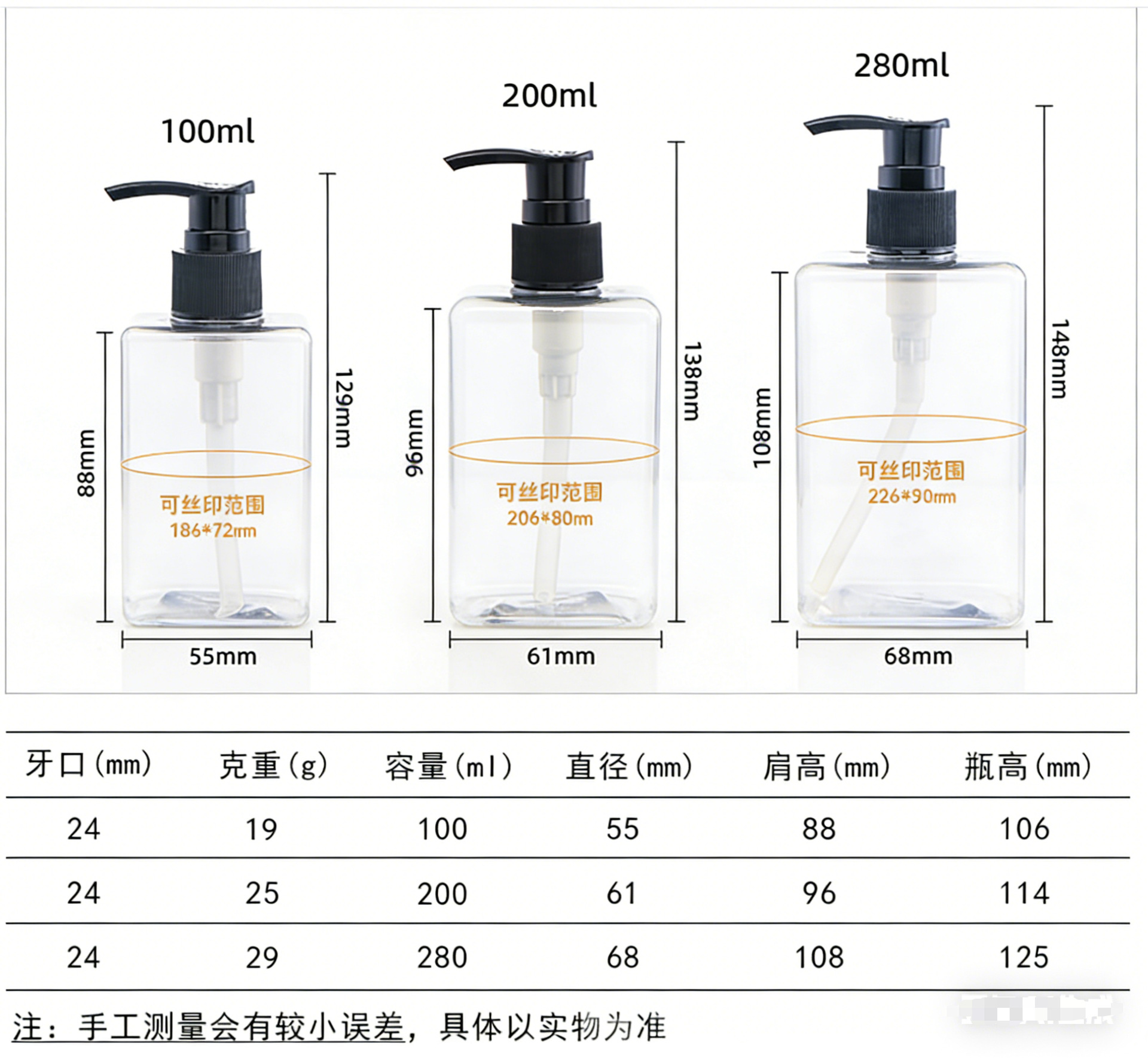 280ml; transparent bottle + plastic pump head; pet