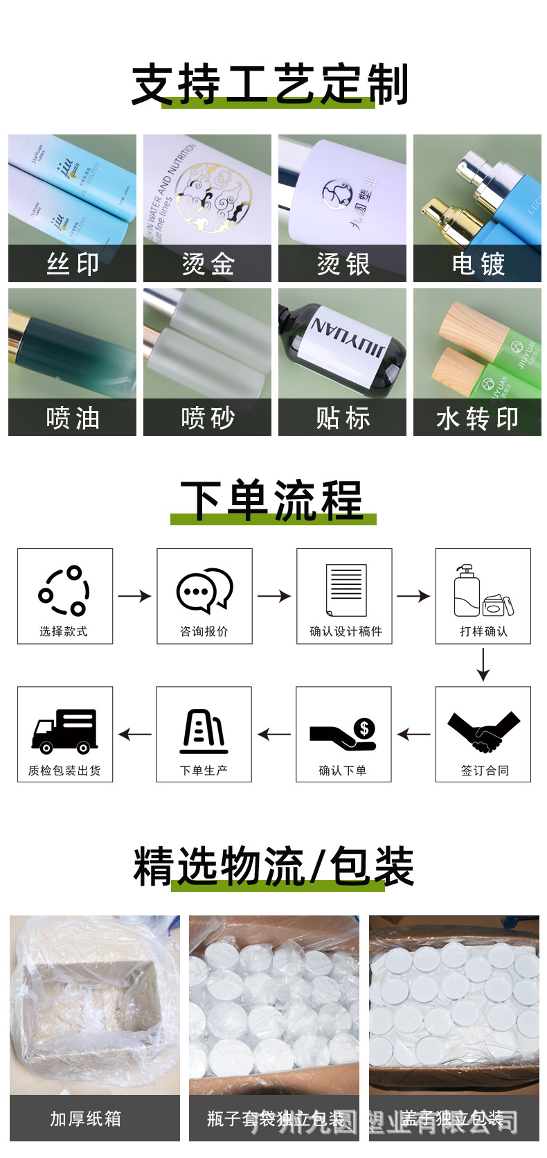 100 ml; dark green bottle + black pump cap; pet