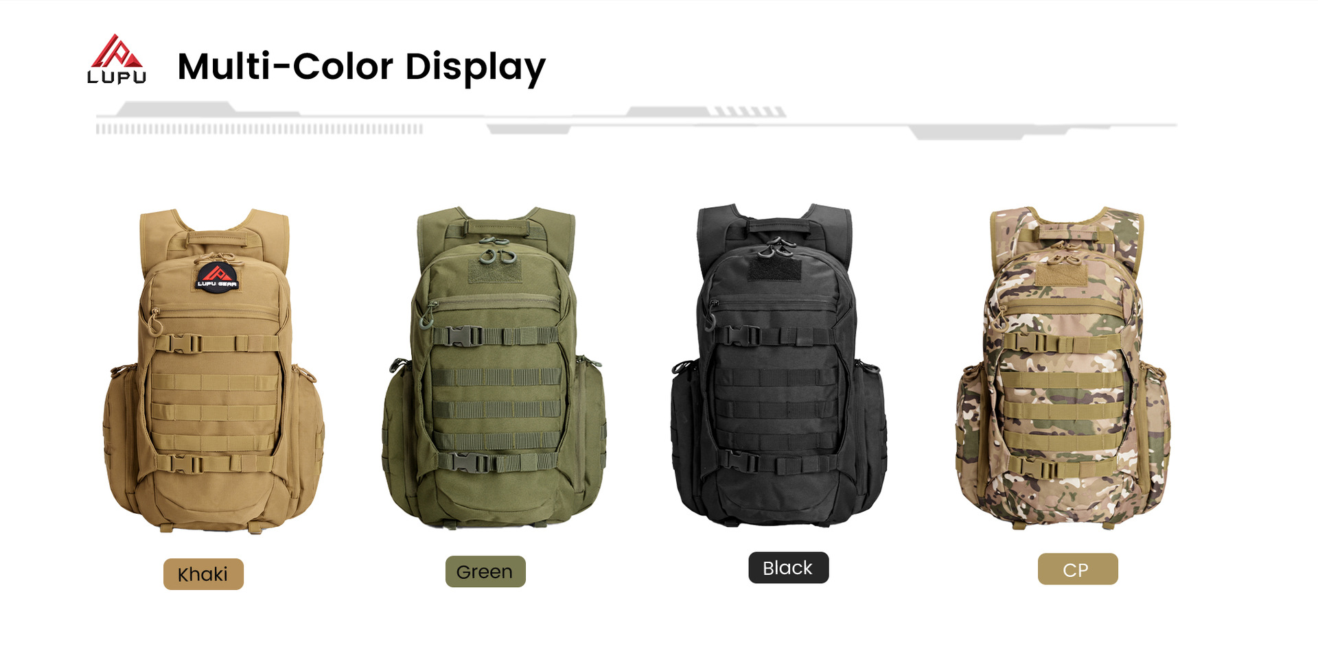 color: black, army green, khaki, cp