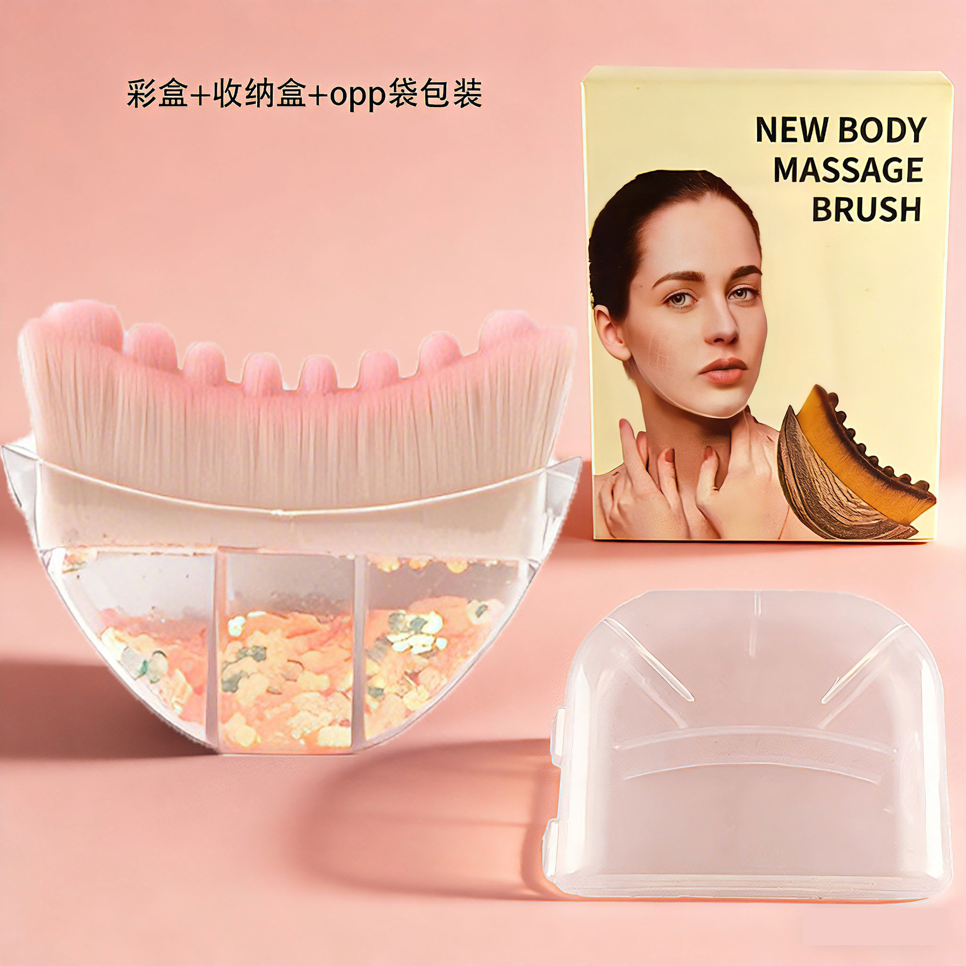 sequin pink lymph massage brush small [storage box + opp bag]]