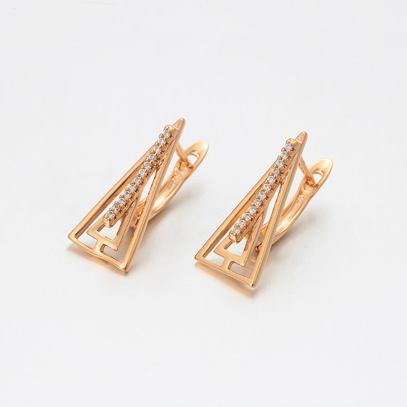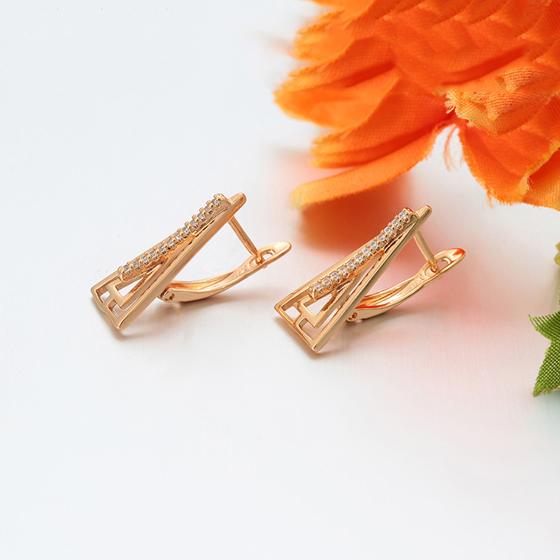 xuping russia ear clip copper alloy plated 18k color geometric triangle hollow out design sense earrings personalized earrings
