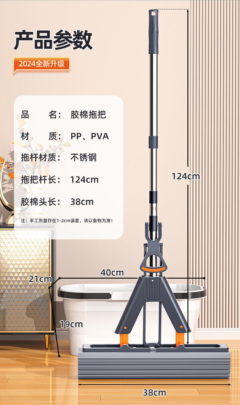 35cm thick plus-sized sponge mop +2 cotton heads [reinforced stainless steel rod]]